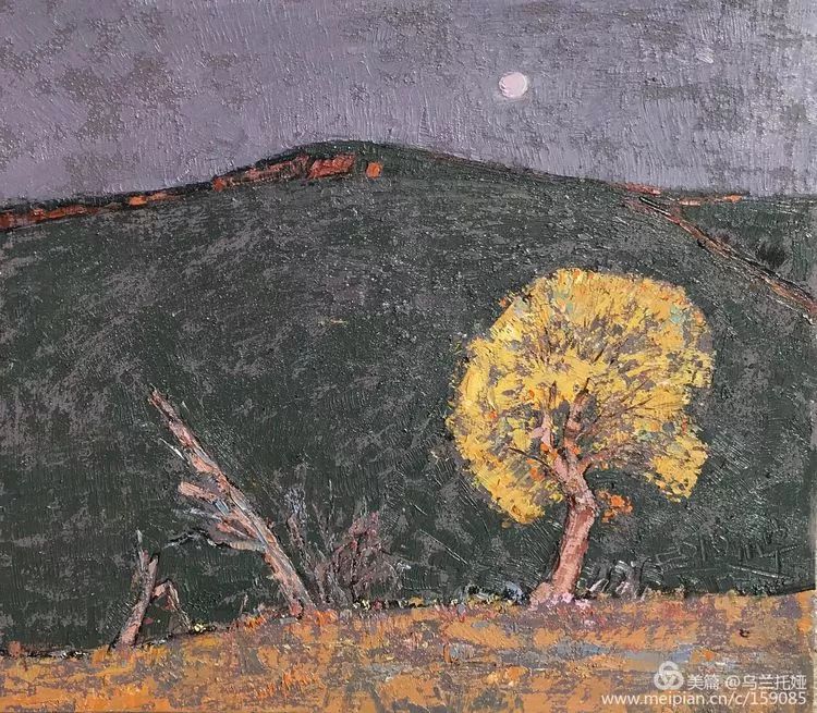 《元上都月亮湖》90x160cm 艺术家所有的造诣都来自痛苦的磨砺。艺术家只有在无数次的淬炼中获得聚集的能量,才有能力穿透物质障碍到达精神的自由之境。真正的艺术品是生活与自然的精神影像,是艺术家自我修炼的心相传达。