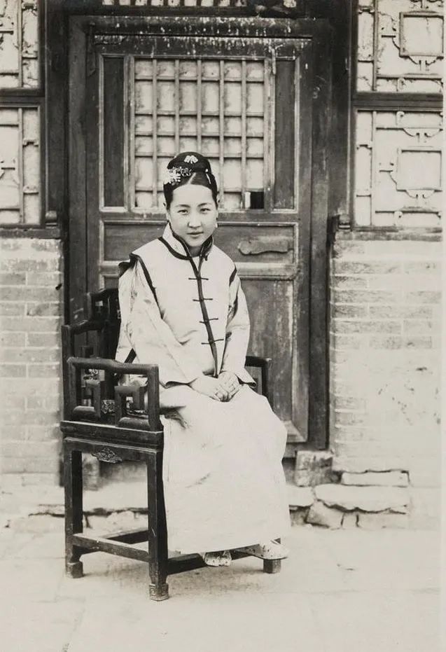 一位蒙古王爷的内室夫人,正坐在椅子上,只见其容貌富态,面露浅浅笑意。