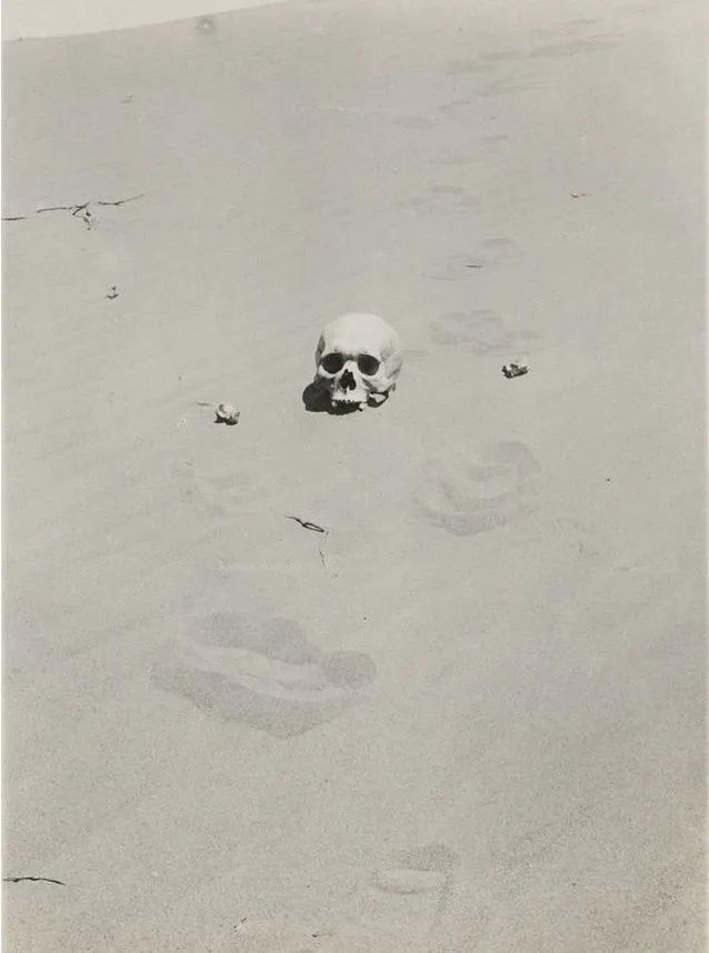 沙丘上的人头骨,这是当时蒙古族普通百姓的一种葬式,去世之后的亡者,放置在旷野中,供野兽咬食,再由喇嘛僧诵经超度。