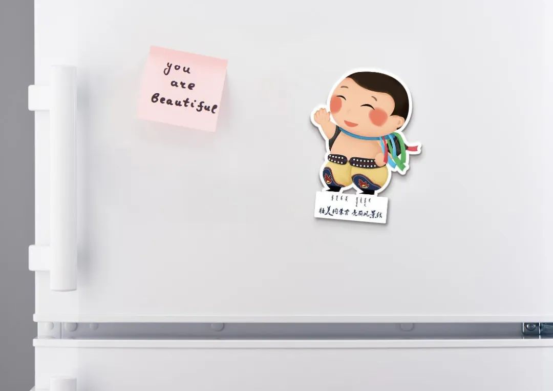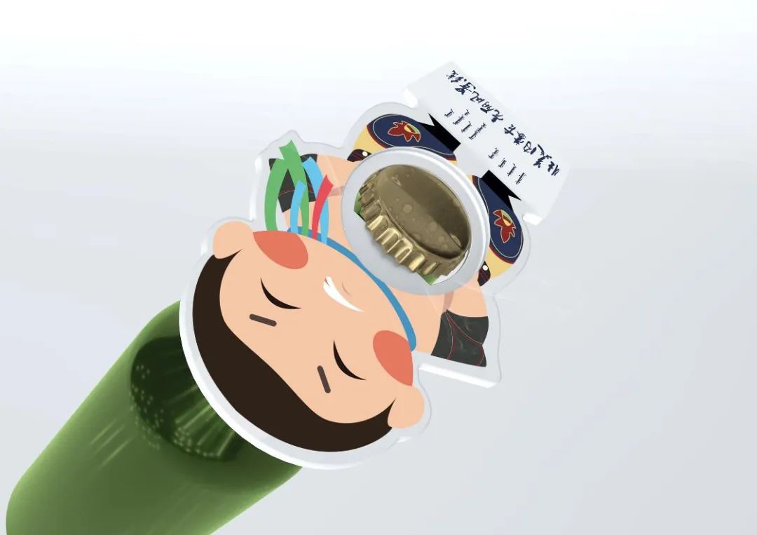 将冰箱贴与开瓶器结合,蒙古儿童用拔起的动作将瓶盖开启,使得使用体验更加有趣味性;闲置时贴于冰箱节省物品放置空间且美观。