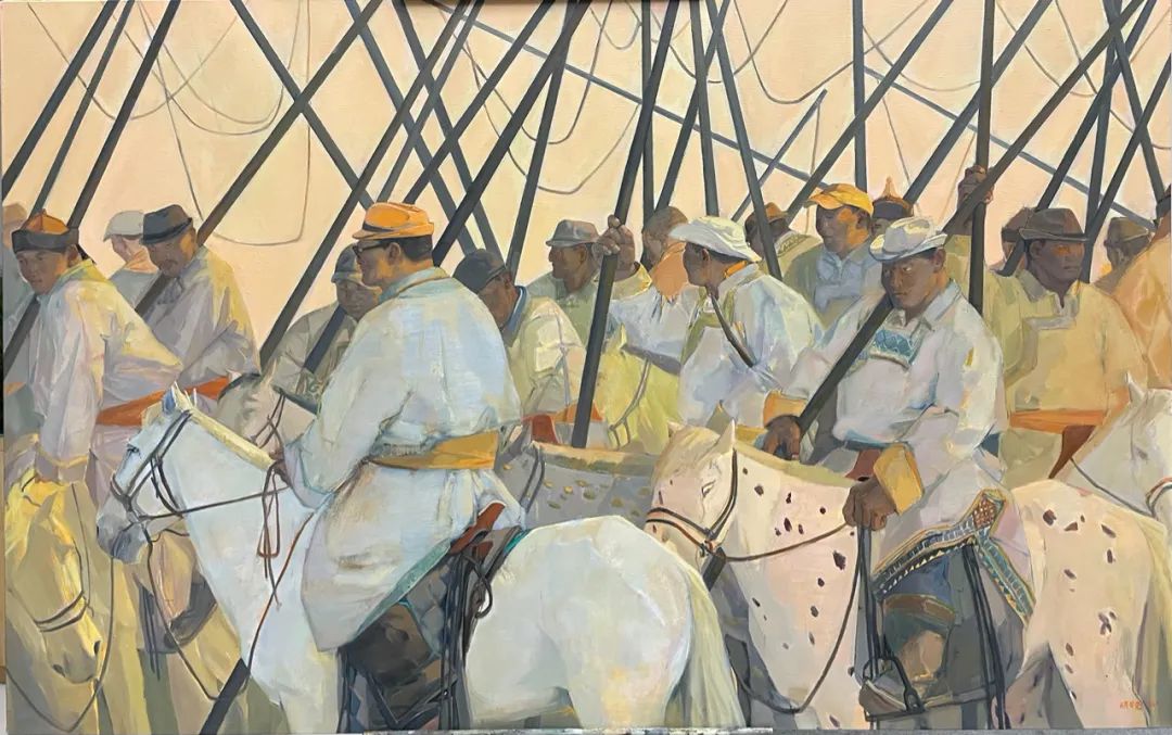 生长在内蒙古草原的蒙古族的艺术家,与草原有着天然的联系和“根”性的情感。我的油画创作同样如此,就如其他蒙古族艺术家一样,选择草原作为艺术的母题,应该说是一种先天的自觉。