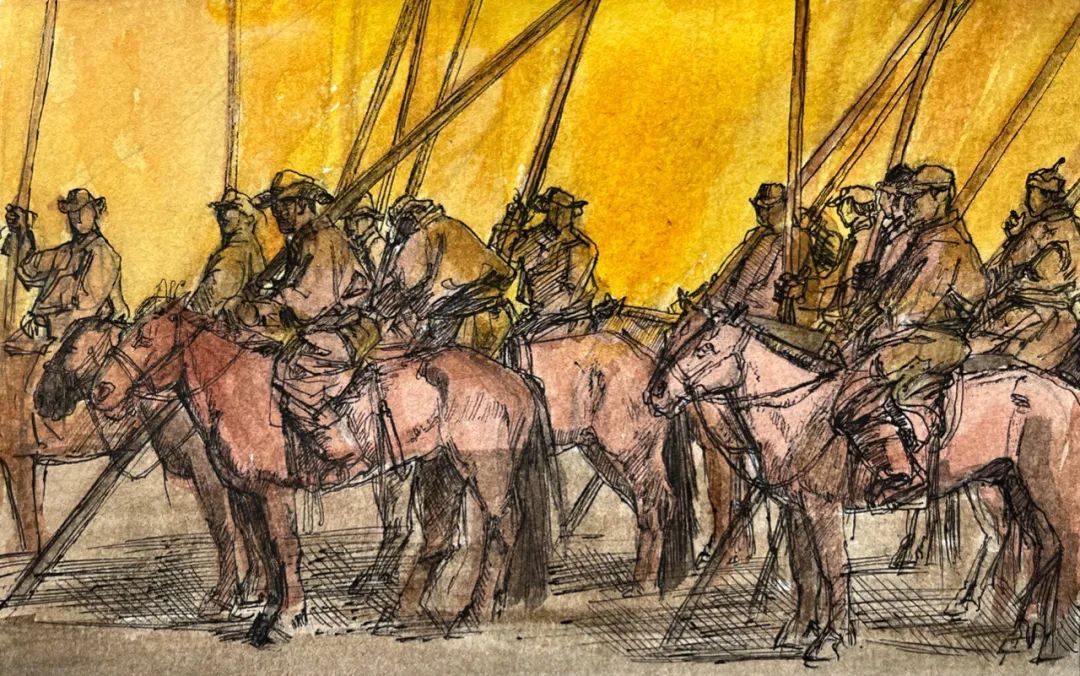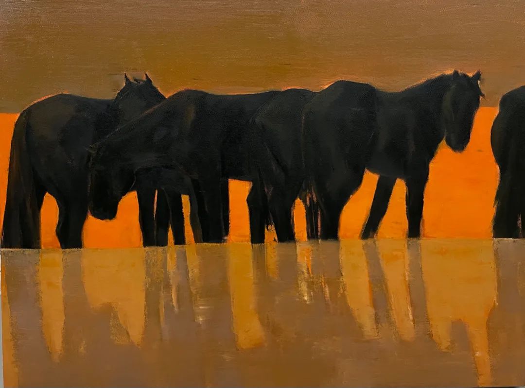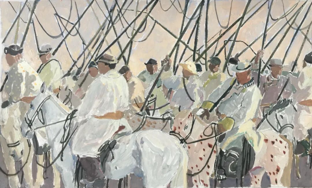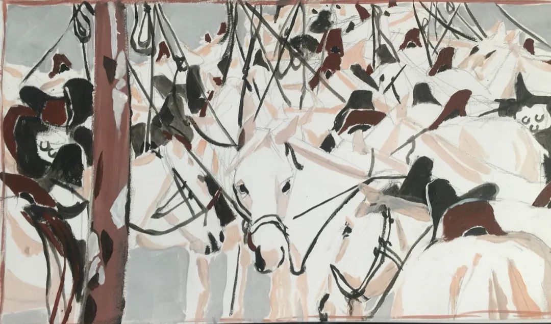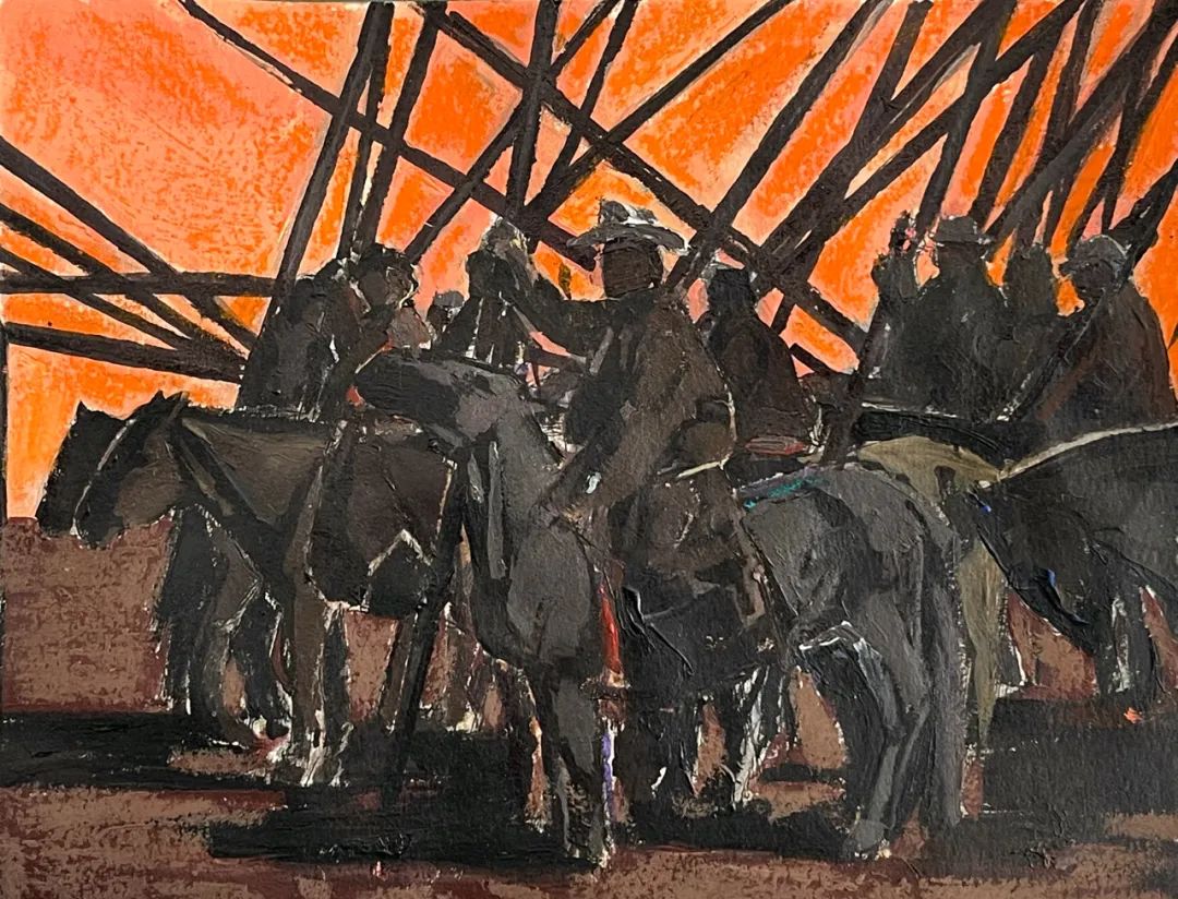 草原的变化对这一母题的艺术创作的影响是显而易见的,许多艺术家在绘画创作中体现了一种倾向,草原似乎成为一种个人传达感受和进行艺术追求的“符号”。毡房、牧人、蒙古马这些代表草原的事物在当下的艺术作品中展露出的不再是浓郁的草原风情和风俗,而更多的是艺术家对草原生活和草原变迁,乃至所处社会环境的个体感受和理解,草原,越来越成为艺术表达所借助的文化符号。同样,在我的一系列作品中,有意展现了这样一种思考,试图通过《困马系列》和其后的作品,对这样的现实进行艺术上的的探讨和追问。