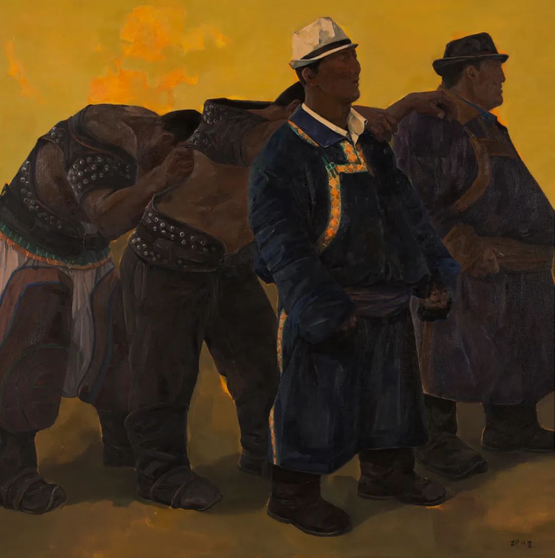 ▲《搏克手》 150 x 150cm 布面油画 2018