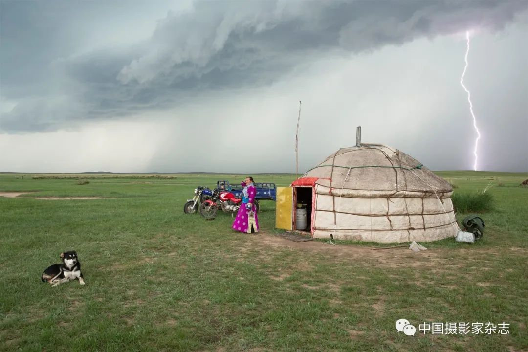 草原的夏天,雷雨来临时刻,牧民苏乙拉的妻子等待放羊的老公回家。内蒙古东乌旗白音高勒嘎查,2012年6月。