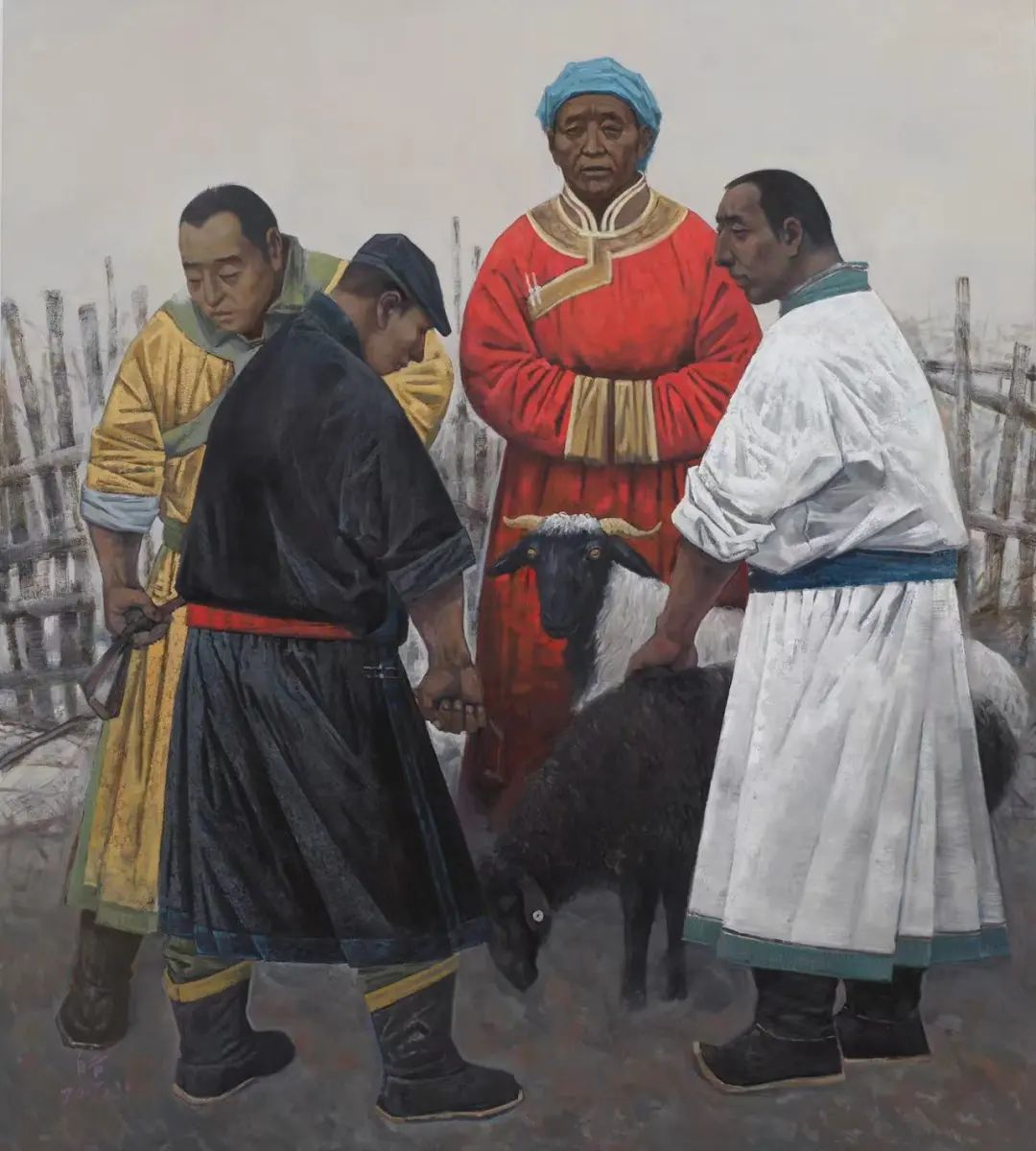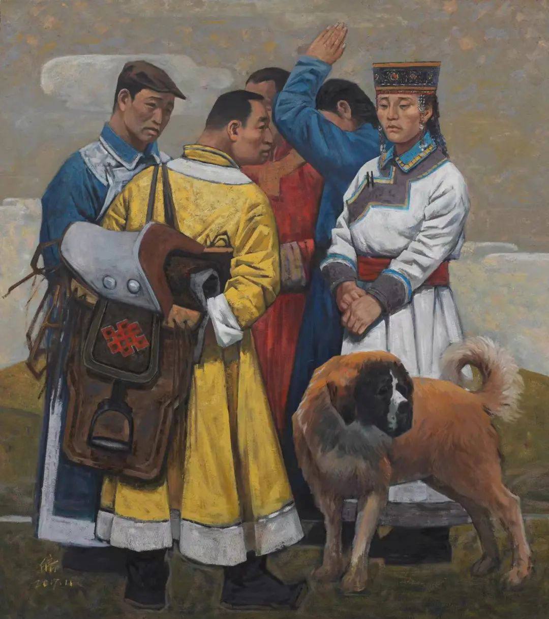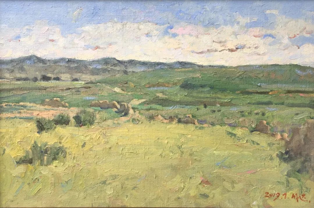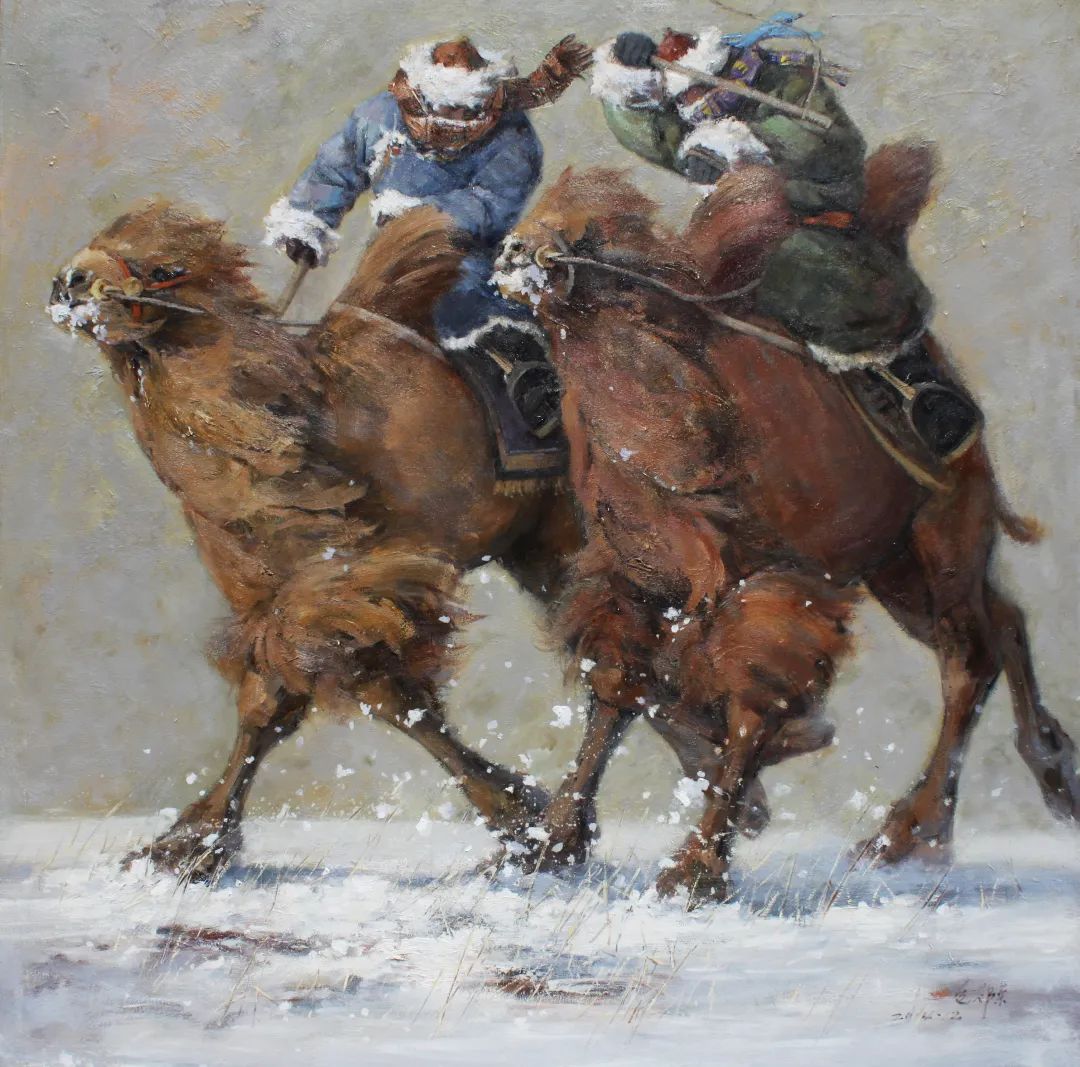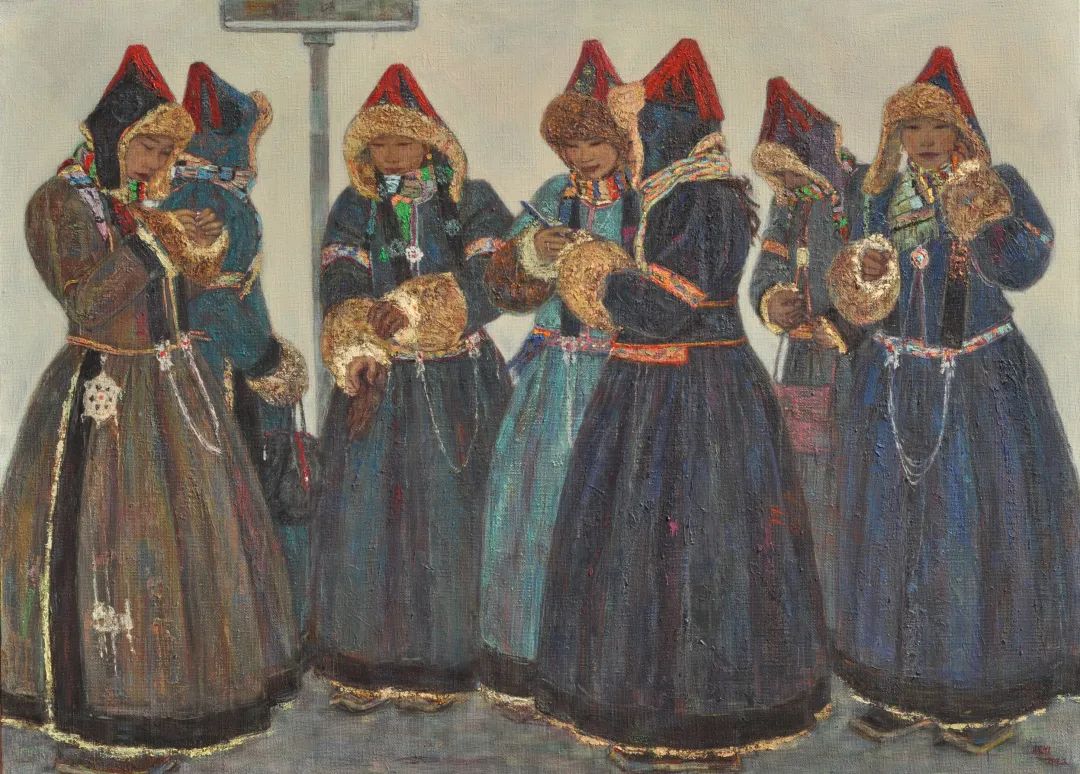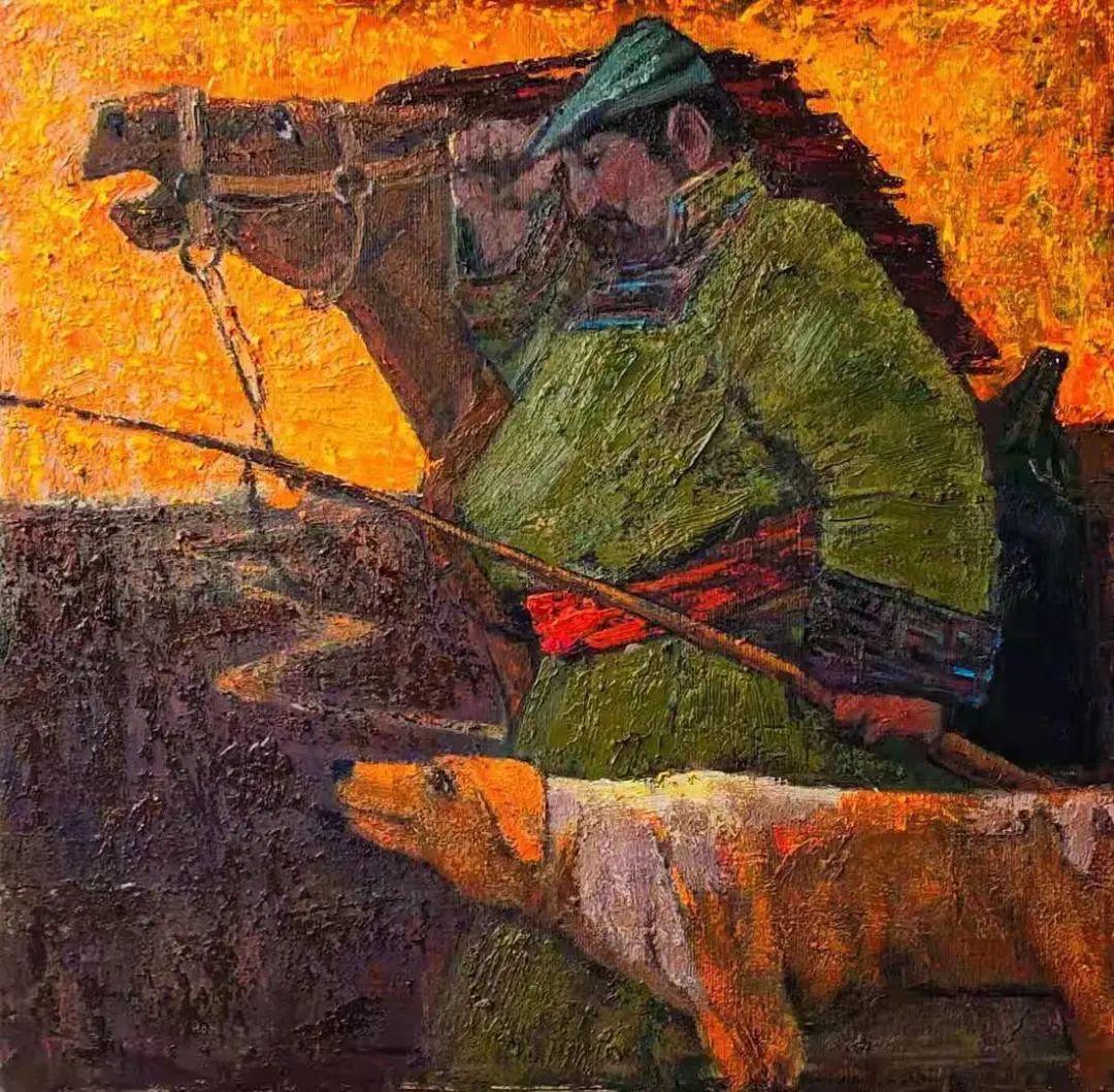 内蒙古自治区地处边疆少数民族地区,深受民族、地域文化的滋养。早在1954年第一所美术高等美术教育院系建设之初,就有王之英、邱石冥等多名当时国内知名教授在此执教,随后又有妥木斯、朝戈、苏新平等一批著名美术院校的优秀毕业生陆续回到内蒙工作,使得内蒙高等美术教育具有较高的起点。自此之后又相继成立了许多所同类院校,形成了相对繁荣的局面。培养了一批批优秀的高等艺术教育人才,这次线上展览中我们所看到的这些艺术家都是工作在内蒙古自治区高校教学前沿的教师,他们为近年以来的草原题材油画创作的现代性探索做出了巨大的贡献。
