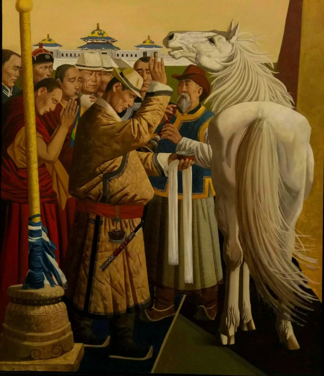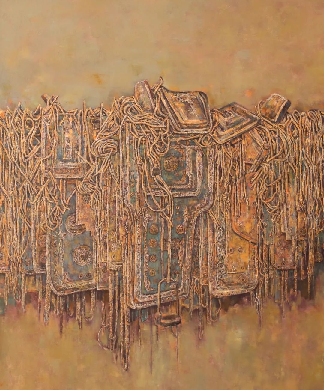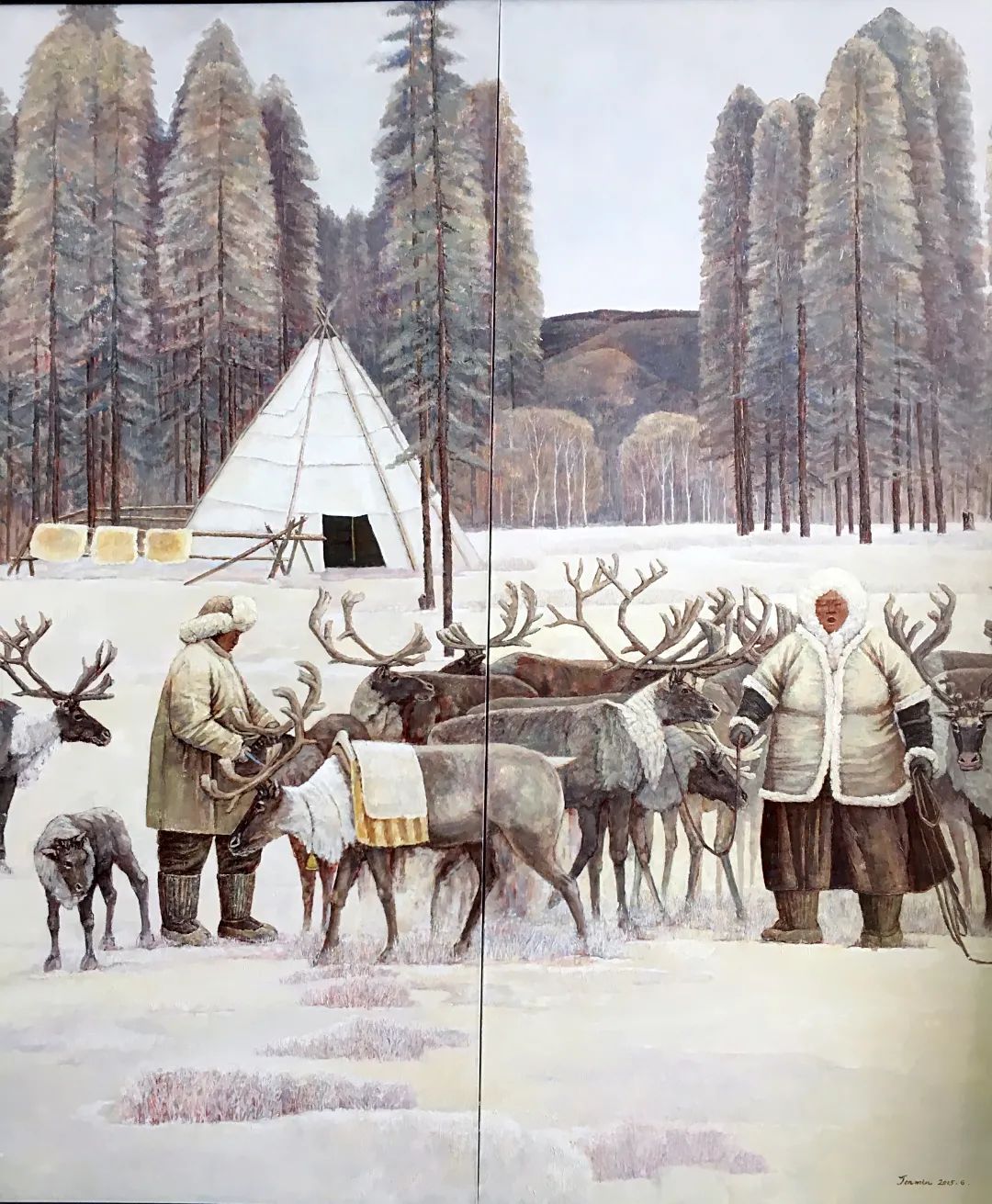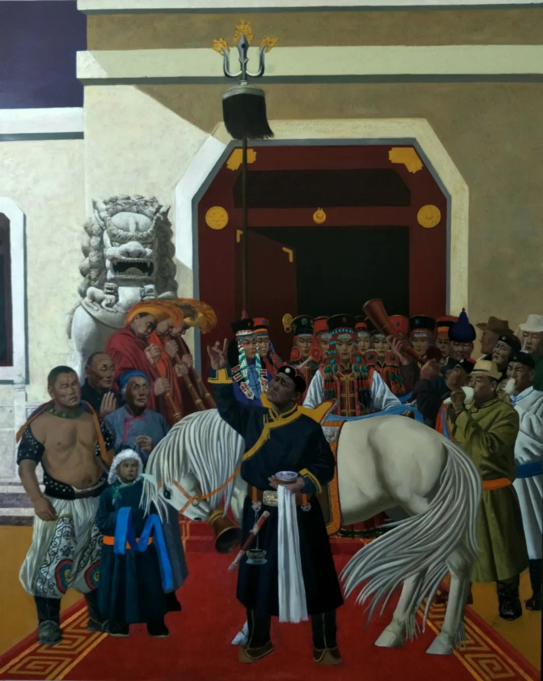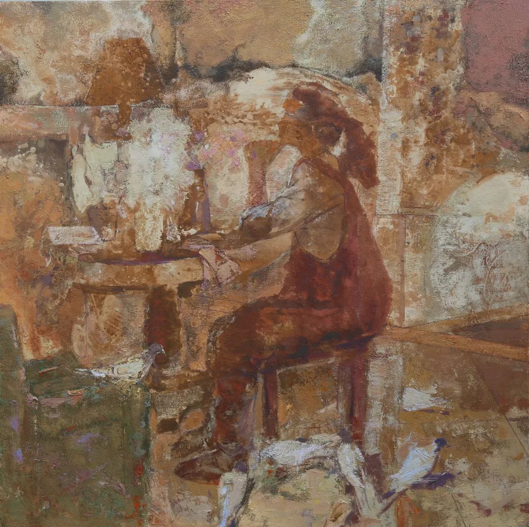 内蒙古自治区地处边疆少数民族地区,深受民族、地域文化的滋养。早在1954年第一所美术高等美术教育院系建设之初,就有王之英、邱石冥等多名当时国内知名教授在此执教,随后又有妥木斯、朝戈、苏新平等一批著名美术院校的优秀毕业生陆续回到内蒙工作,使得内蒙高等美术教育具有较高的起点。自此之后又相继成立了许多所同类院校,形成了相对繁荣的局面。培养了一批批优秀的高等艺术教育人才,这次线上展览中我们所看到的这些艺术家都是工作在内蒙古自治区高校教学前沿的教师,他们为近年以来的草原题材油画创作的现代性探索做出了巨大的贡献。