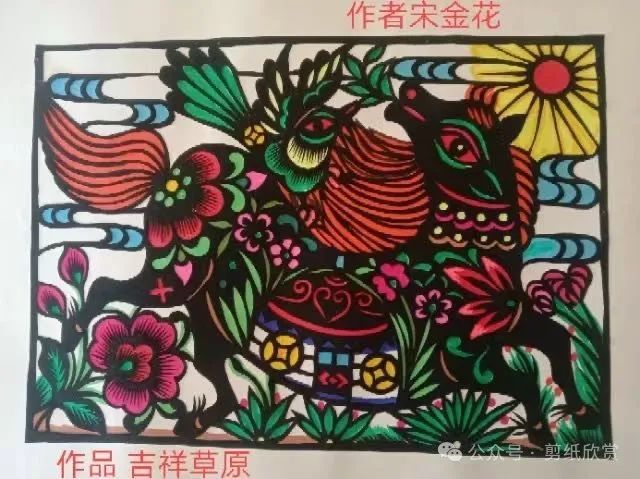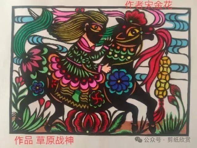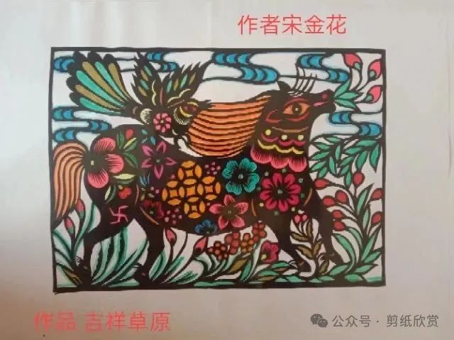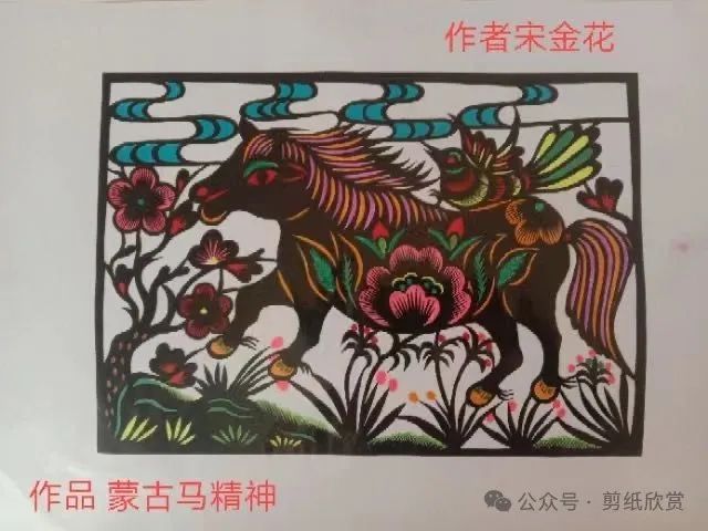 “天苍苍,野茫茫,风吹草低见牛羊。”宋金花就出生在达茂旗莽莽的草原上,奶奶,姑姑,母亲都会剪纸,用剪纸做鞋花,枕头花,宋金花在这样的氛围中,六七岁就开始拿着剪刀开始剪花样了。金花家里弟妹多,生活拮据,一家人有时在农区,有时到牧区。过年过节放牧时,都是金花剪纸的好时光。后来政策好了,很多人也知道了她,请她去剪纸,教孩子们和老人们剪纸。在剪纸中金花忘记了生活的苦难,一刀一剪,带给她无限的快乐和幸福。因为剪纸,她认识了很多剪纸老师,交了很多好朋友。岁月易逝,她美丽的大眼睛中却永远闪着光彩,那是剪纸带给她的理想之光。她用传统的民间剪纸阐释着新时代的颂歌,剪奔腾的草原,剪温暖的蒙古包,剪支援的医护工作者,剪多姿多彩的蝴蝶,剪吉祥绚丽的喜花。随手剪下的小花,拼拼组组,又是一番新的模样。她沉醉其中,享受着剪纸的美好。