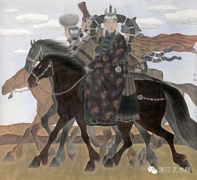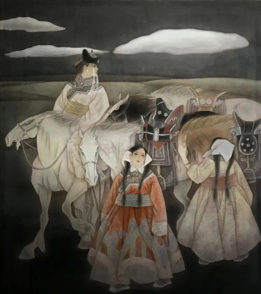 茹少军的作品以民族风情画为主,展现了我国北方草原大漠的壮美风景和独特的人文风情,具有独特的艺术风格和文化内涵。他的创作手法独具匠心,将传统的中国画技法与现代艺术手法相结合,创新性地提出了适合当代少数民族题材风俗画的绘画方法。这种多元化和现代化的创作方式使得他的作品更具当代感和表现力,给人以强烈的视觉冲击力和美感享受。作为一名优秀的中国画家,他的艺术成就得到了广泛的认可和高度的赞誉,其作品在国内享有很高的声誉,连续入选第十届、第十一届、第十二届、第十三届全国美展,并多次获得金奖、铜奖、优秀奖等荣誉,同时,在国际上也受到了广泛关注和好评,多次受邀到日本、蒙古国、马来西亚等国家举办个人画展。