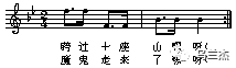 通过衬词“哼捷嘿呀”,《献牲》的结构变为四小节,整整扩大了一倍。轻重格律方面,实词和衬词加在一起,变成四个“扬抑格”,达到了新的平衡。