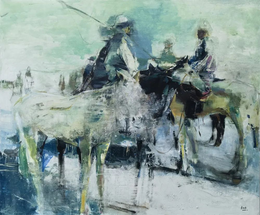 张海龙 马与牧人—绿色的高原 150cm×190cm