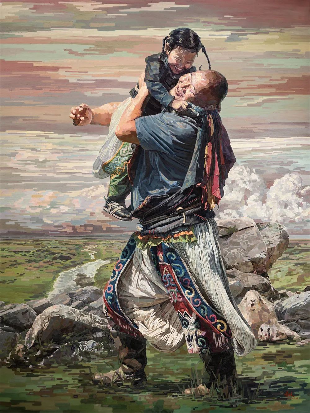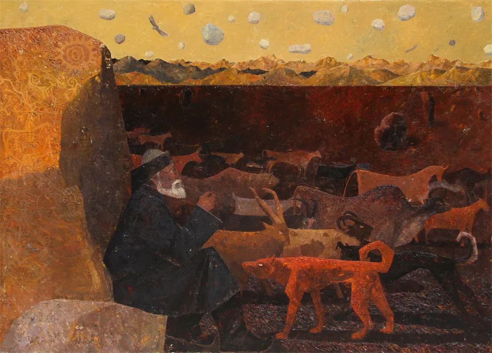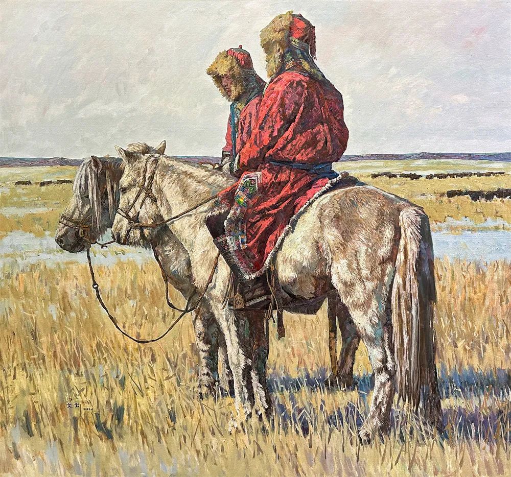 文宝 巴拉嘎尔冰河畔牧人 180cm×190cm