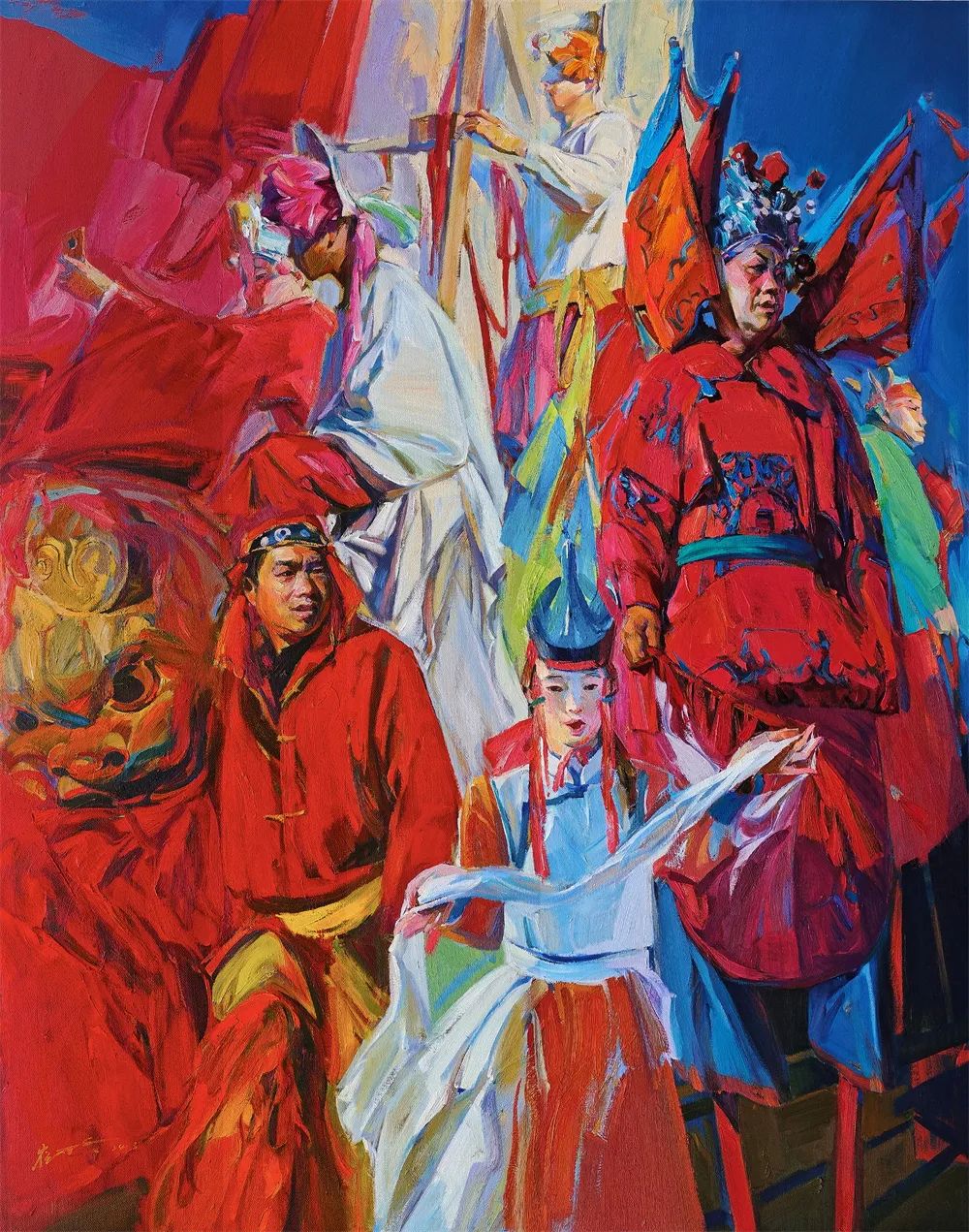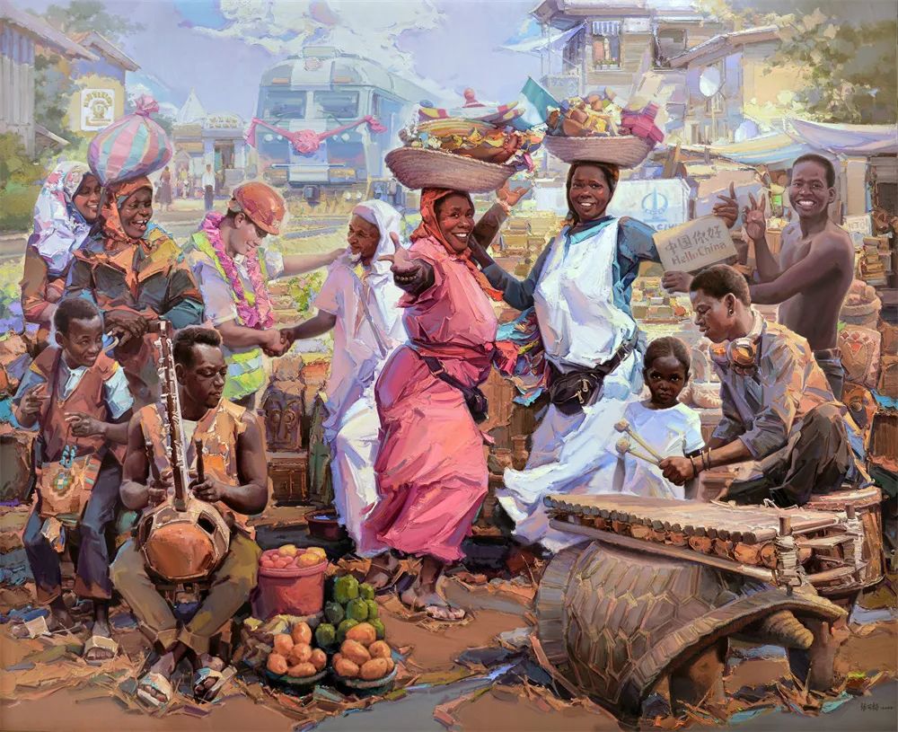 李旺平 节日·迎接远方归来的亲人们 96cm×160m