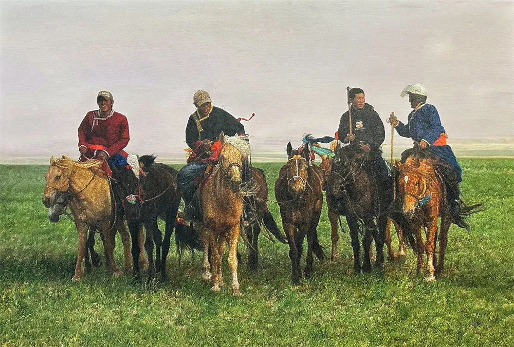 张海龙 马与牧人—绿色的高原 150cm×190cm