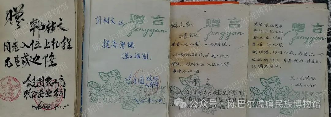 出来前班主任、场部、人武部等好多人给了寄语,这些本子他都带到部队,激励他努力工作,记满收获。
