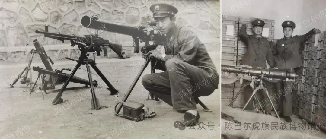 我军迷彩服最早出现在对越自卫还击战中,那时候也只有少数野战部队装备,战斗班需要伪装,这时期的迷彩斑块很特殊,有多余的带回家那可是年轻人的抢手货。因为对越自卫还击战,部队开始整训,又把新兵们集中到四连五连进行为期近九个月的全训,这是更为严格的多科目高强度的全训。韩树文分在五连三排八班的重武器班,也就是八二无后坐力炮班当了一炮手。在全训中通过大量实弹射击,熟练运用了各种轻重武器,尤其是82无后坐力炮在全团比武中在“敌”火力点下快速反应,首发命中目标为连队争得了荣誉。左图是重火力班的装备、从左60迫击炮、40火箭筒、班用重机枪、82无后坐力炮,各班按照规定武器编制使用;右图为韩树文在武器库里和同乡战友王福成保养武器,图为65式82毫米口径无后坐力炮。该炮为营属火炮,使用榴弹或破甲弹,这是多次参加过实战的武器,曾参加过珍宝岛自卫反击战,取得不俗战绩,在对越自卫还击战曾出现14发炮弹摧毁越方12个火力点的战例。当时对越自卫还击战正在进行,部队通知延期训练,没准要上战场。