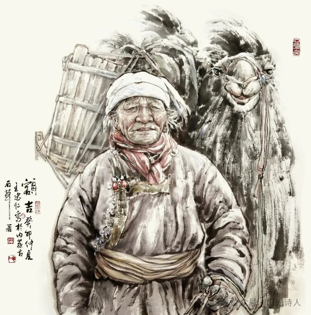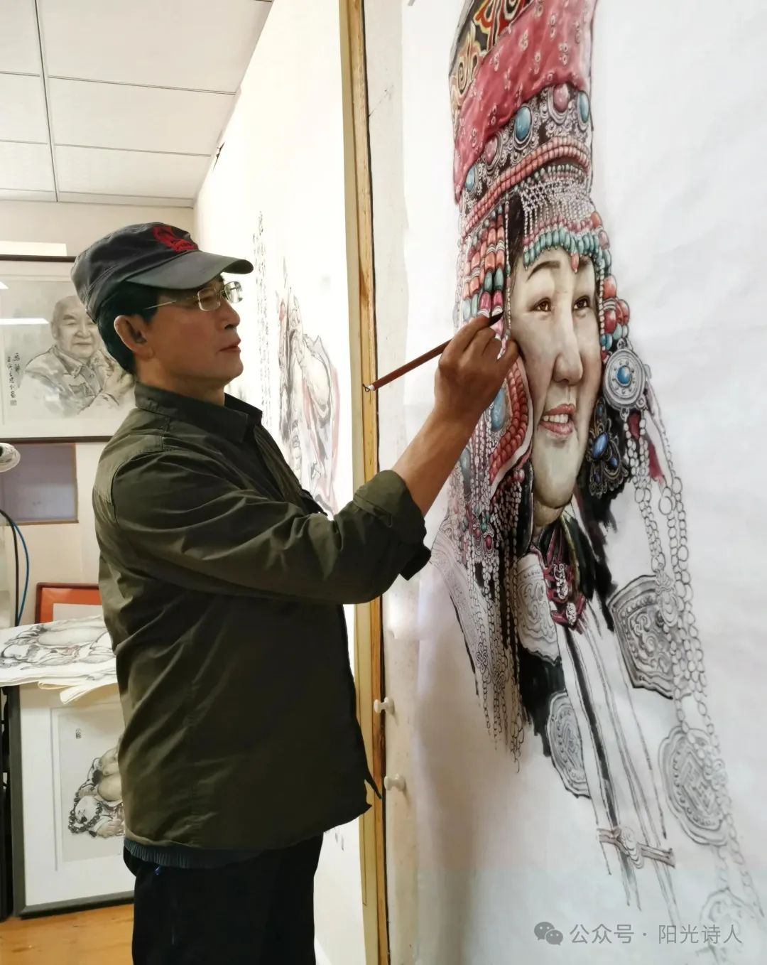 王忠仁老师巧妙地运用光影效果,将著名作家、蒙古族《哈斯乌拉》的面容勾勒得层次分明,每一道皱纹都似乎在诉说着过往的沧桑与智慧的积淀。他的笔触时而细腻温婉,如同轻抚过历史的尘埃;时而粗犷豪放,如同挥洒着不羁的才情。在这样的对比与融合中,《哈斯乌拉》的形象变得立体而生动,仿佛随时都能从画布中走出,与我们进行一场跨越时空的对话。