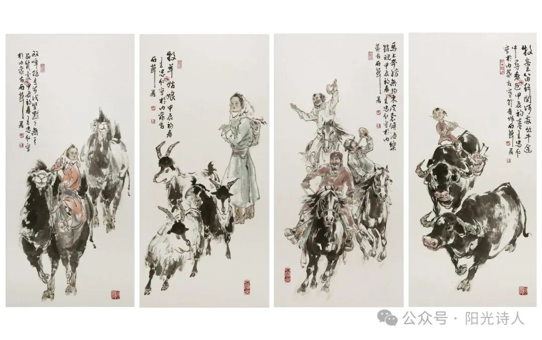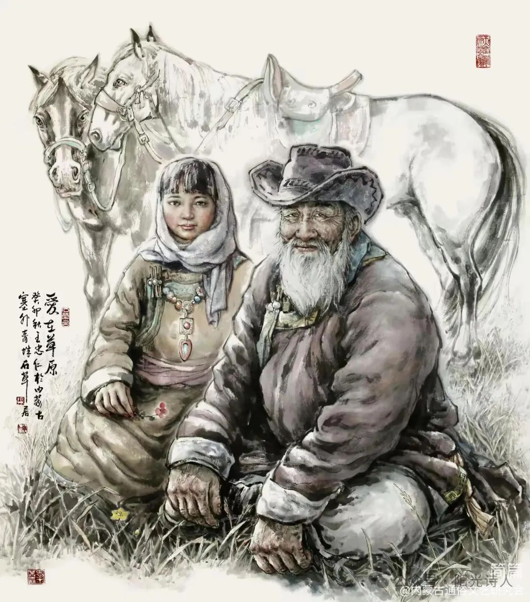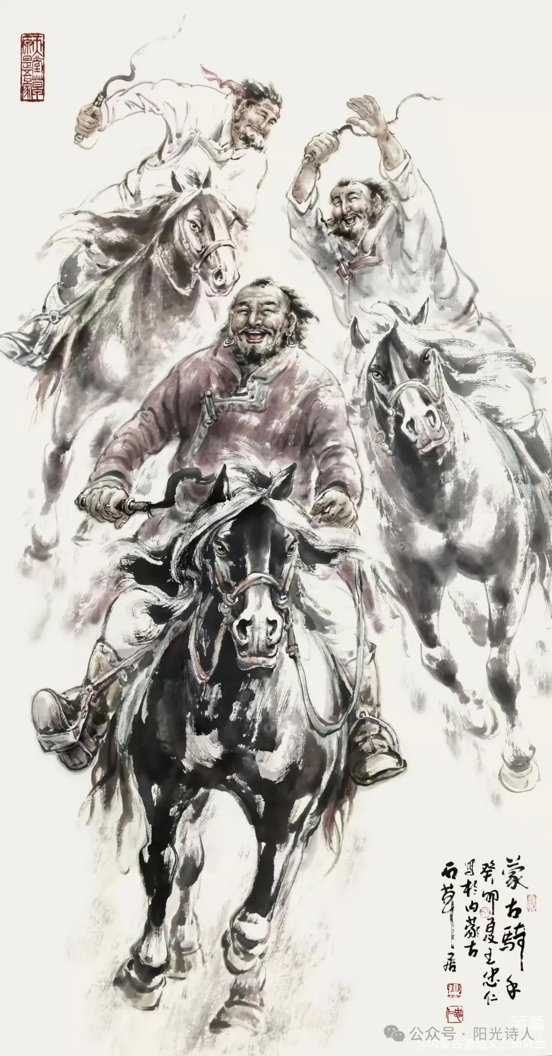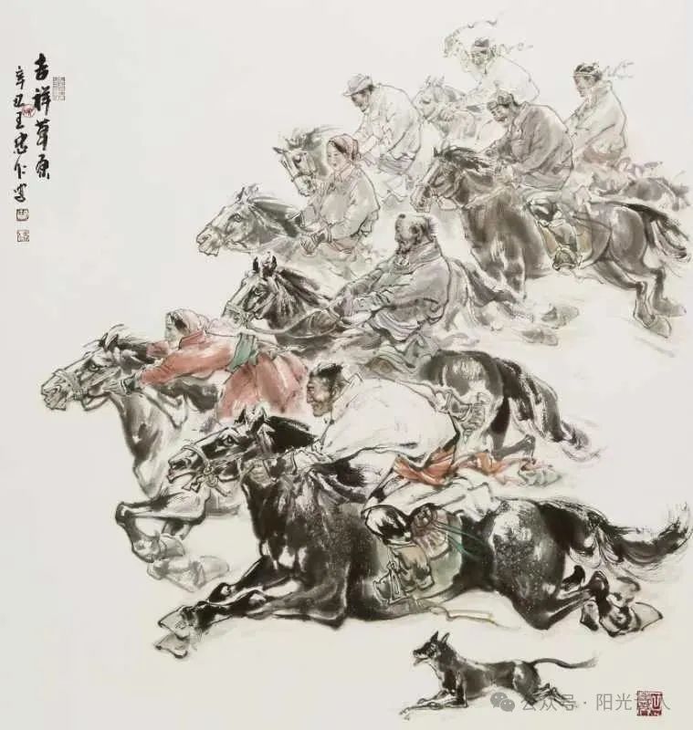 在他的画作中,传达出他对草原的深厚情感和独特理解。每一幅画都讲述一个草原上的故事,让我们在欣赏画作的同时,也能感受到草原文化的魅力和生命的力量。