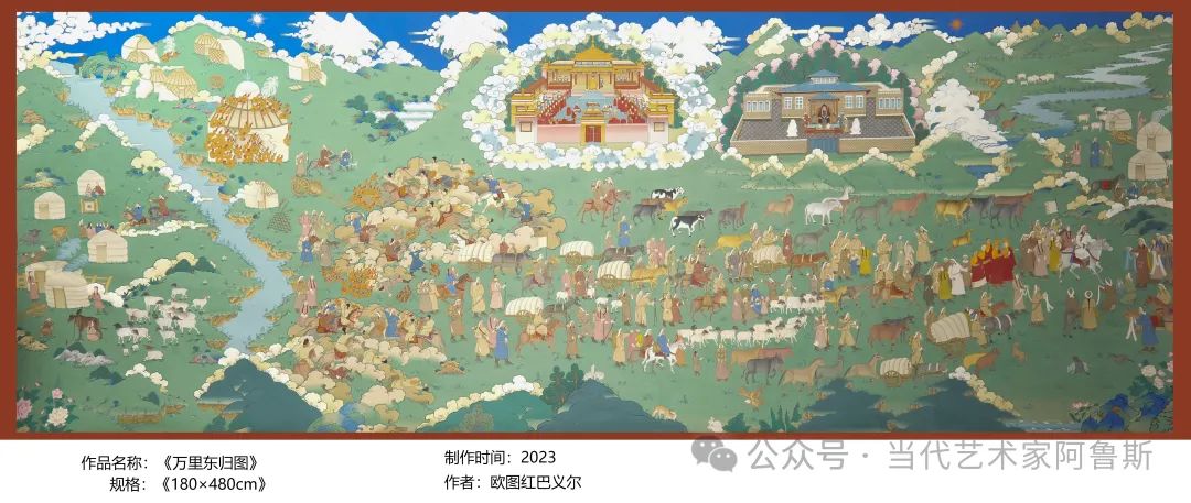 展览地址|Exhibition address北京市朝阳区酒仙桥路2 号 798 艺术区中二街骊画廊传承与魅力——女艺术家欧图红巴义尔唐卡艺术精品个展 唐卡,意为“绘于布上的佛像”。据史书记载,唐卡最早出现在吐蕃王朝时期,即公元7世纪左右。当时,随着佛教的兴起,唐卡作为宣传教义的工具逐渐流行起来。在西藏,许多寺庙都拥有自己的唐卡画室,培养了一批批技艺精湛的唐卡画师。随着时间的推移,唐卡逐渐发展成为一种具有独特风格和民族特色的绘画艺术。 唐卡以其独特的艺术形式和精湛的绘画技巧,被誉为中国民族绘画的瑰宝。它所呈现的色彩鲜艳、线条流畅的画面,以及富有象征意义的图案,给人以强烈的视觉冲击。此外,唐卡的绘制过程十分复杂,需要经过多道工序和烧制,对画师的技艺要求极高。 艺术家欧图红巴义尔,女,蒙古族,新疆巴音郭楞蒙古自治州和静县人,出生于1988年,现为中国(香港)美术家协会会员、全国非物质文化遗产美术创作传承人。自幼画画的她对绘画有着喜爱与见解,2014年至2022年毕业于西藏丹巴绕旦唐卡艺术学校,刻苦学习唐卡艺术8年。 2016年6月绘制唐卡大赛中荣获一等奖, 2019年7月作品《A2757药师佛》入选同仁县 (2019年“最大规模唐卡展示) 2017年至2023年西藏大学艺术系国家级工艺美术大师勉唐派传承人丹巴绕旦大师为师。 2023年毕业后自创作品有《万里东归图》、2024年《生死轮回》(手持金刚)、《九次第定图》、《第五世甘见喇嘛神像》等优秀作品。 2023年11月5日个人画展以东归精神为主题首次举办在新疆和静县美术馆; 2024年8月29日举办非物质文化遗产项目(唐卡)作品展。 2024年9月全国非物质文化遗产“美术创作”传承人荣誉称号。 绚丽多彩的唐卡艺术是藏族文化的瑰宝,也是人类文明的宝贵遗产。在当今社会中,我们应该更加重视和保护这一传统艺术形式,为它提供更好的传承和发展环境。同时,我们也要鼓励创新,让传统与现代相结合,使唐卡艺术焕发出更加璀璨的光彩。让我们共同期待唐卡这一东方明珠在未来的世界文化交流中绽放出更加耀眼的光芒。 2021年12月14日,习总书记在中国文联十一大、中国作协十大开幕式上的讲话中提出“要挖掘中华优秀传统文化的思想观念、人文精神、道德规范,把艺术创造力和中华文化价值融合起来,把中华美学精神和当代审美追求结合起来,激发中华文化生命力。”中国唐卡的守正创新,从神性涵概人性,从精神博衍于生活,从传统走向现代,它所蕴藏的独特民族审美、民族精神也必将影响其他类别的艺术创作,丰润中国人民的精神生活。无论身处于什么样的时代,人类都需要“美”作为心灵的引导。当我们开启内在智慧,就会懂得美与佛并无二致,都在引导人们和万物相亲、引导人们与社会和谐!祝愿“传承与魅力——欧图红巴义尔唐卡艺术精品展”圆满成功! 欧图红巴义尔,1988年出生,唐卡画师,热爱绘画唐卡艺术,从事唐卡行业六年,在绘画方面也不例外,蒙古人民极其崇尚佛画艺术、藏传佛像画,中国新疆省唯一的蒙古族女孩唐卡传承人,唐卡,梦开始的地方。 欧图红巴义尔来自新疆省巴音郭楞蒙古自治州和静县,自幼学习画画的她对绘画有着自己的喜爱与见解,于是2014年到青海热贡拜了一位出家僧人老师,互拜为师,互相学习,但两人始终没有画过对方的画,这在徒弟中被传为佳话,唐卡自此在欧图红巴义尔心中留下烙印,开始了自己的学习绘画唐卡之路,精妙的勾勒细致的线条,每一笔都是深深的吸引着她。 然而梦想的启航并不是一帆风顺,相反更多的困难等待着她,青海热衷“人人会画,人人能画”的地方,有过不少唐卡大师,然而唐卡绘画技艺大多只传授给藏族本民族的人,这个蒙古女孩并不能被这里的老师认可,学习之旅变得坎坷起来,但这并没有浇灭她学习唐卡的热情,去了更多的寺庙,观看更多的唐卡作品。来自寺庙的一个喇嘛告诉她,你们也有自己的蒙古唐卡,这句话更是点燃了她学习唐卡的信心,就这样坚持着学习热贡画派三年,三年时间老师认可了她的绘画。 回到家乡后自己创作了绿度母唐卡,作为回报捐到了家乡的一个寺庙后,得到了当地政府领导与喇嘛们的认可,前后在拉萨拜了一位西藏大学艺术系勉唐派传承人国家级工艺美术大师丹巴绕旦老师为师,至今3年。仍然继续学习勉唐派的风格,也得到了老师的认可。老师对于这个蒙古族女孩像父亲一样,而且也经常对她说蒙古族和藏族就是一家人,让她继续在这条路上坚持走下去。对于个人而言藏传佛教的理论文化是一辈子也学不完的,这是条永远也没有止境,让她一直努力学习下去的道路。