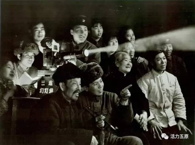 全村人聚在一起,在露天场地看电影。