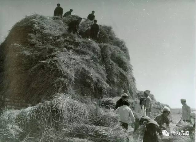 人们在场面里堆麦秸