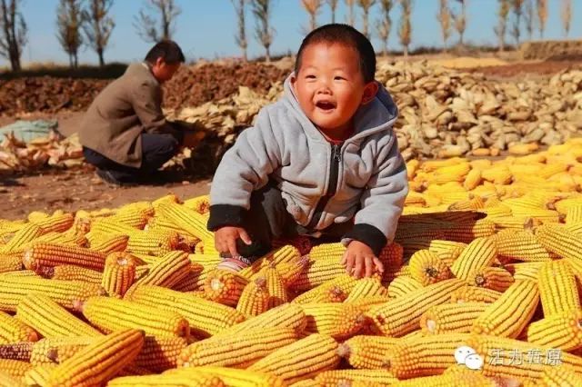 金色的玉米棒子挂成串儿,映衬着人们丰收的喜悦。