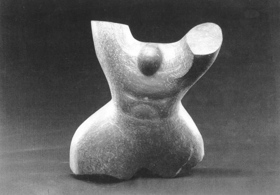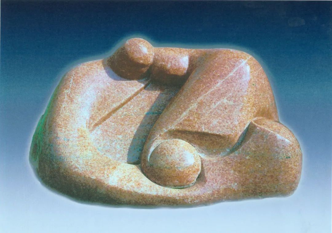 说到少数民族,应该提到内蒙古有成就的雕塑家张恒。他的这件花岗石雕塑大约起码几百公斤,刻划了蒙古民族《豪饮》,一对好友,“生死相交”,“荣辱与共”,痛饮之后,由里到外醉成一堆,融为一气,凝成一个浑然无间的蒙古包。这的确是很有趣的处理。(1989年9月3日光明日报;理解和运用体积美节选)