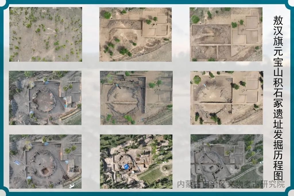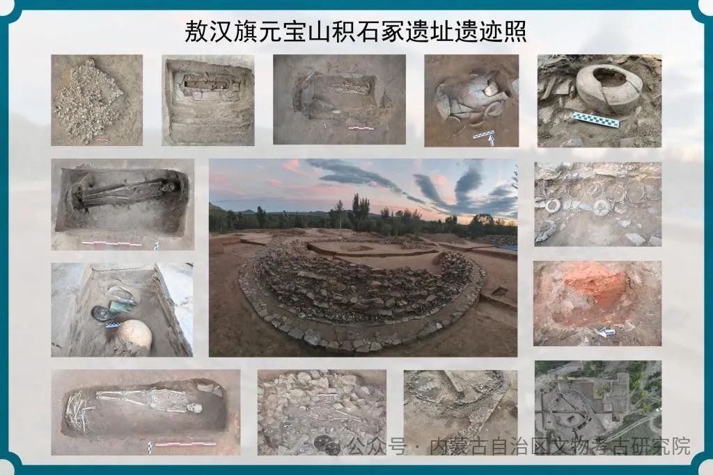 2023年11月,位于赤峰市敖汉旗下洼镇元宝山积石冢被盗,当地文物管理部门上报后,2024年初内蒙古自治区文物考古研究院经自治区文物局批准,以抢救性考古发掘向国家文物局申请并得以批准。4月底,组队对该地点及周边开展调查并进行了勘探。5月正式启动发掘,截至目前已明确该地点为一处集墓葬建筑与祭祀建筑于一体的红山文化遗存。也是目前所知内蒙古自治区唯一的一处南方北圆、南坛北冢的红山文化晚期建筑遗存。