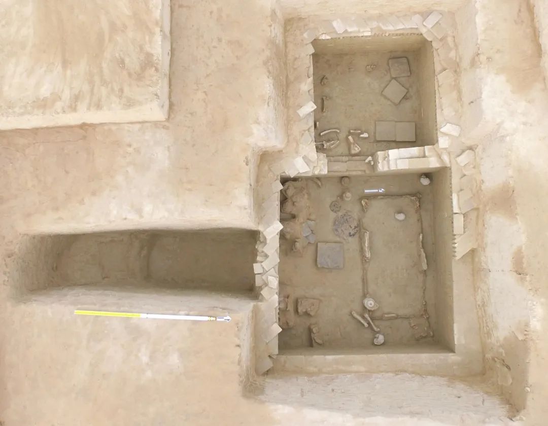 玖鄂尔多斯市准格尔旗脑包湾陈氏家族墓地地处库布其沙漠东北缘、黄河南岸,北距十二连城古城约1.3公里。共发掘墓葬20座,出土各类遗物200余件,根据墓志记载可知该墓地为唐代陈氏家族墓地。十二连城古城曾为唐代胜州榆林县城,胜州的治所也设在城内,陈氏家族墓地即是该城外围的一处墓葬区。这批墓葬由西向东、由南向北依次排位,墓葬结构多样,规格悬殊明显,反映出家族成员之间的身份地位存在差别,为研究唐代胜州社会历史、颍川陈氏的迁徙流布及葬俗葬制提供了重要的实物资料。