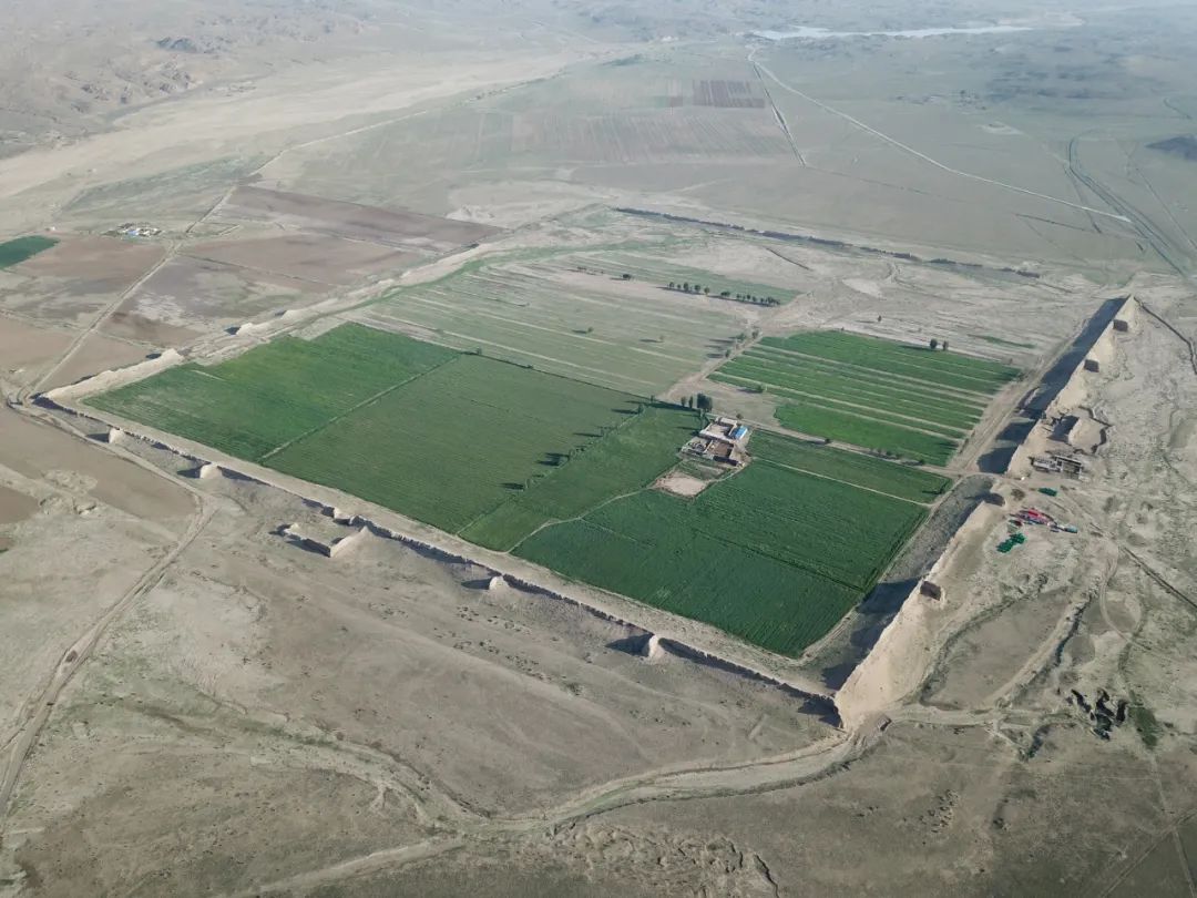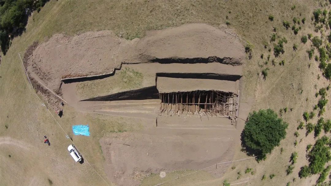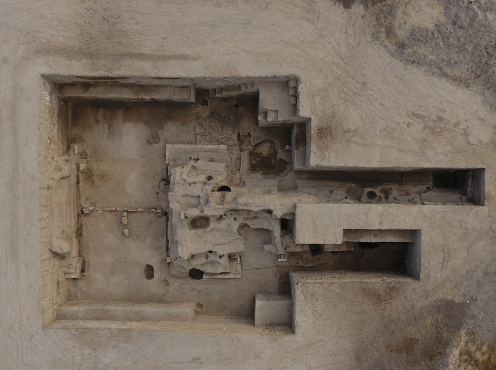和日门塔拉城址中城中心IIA夯土台基发掘区航拍