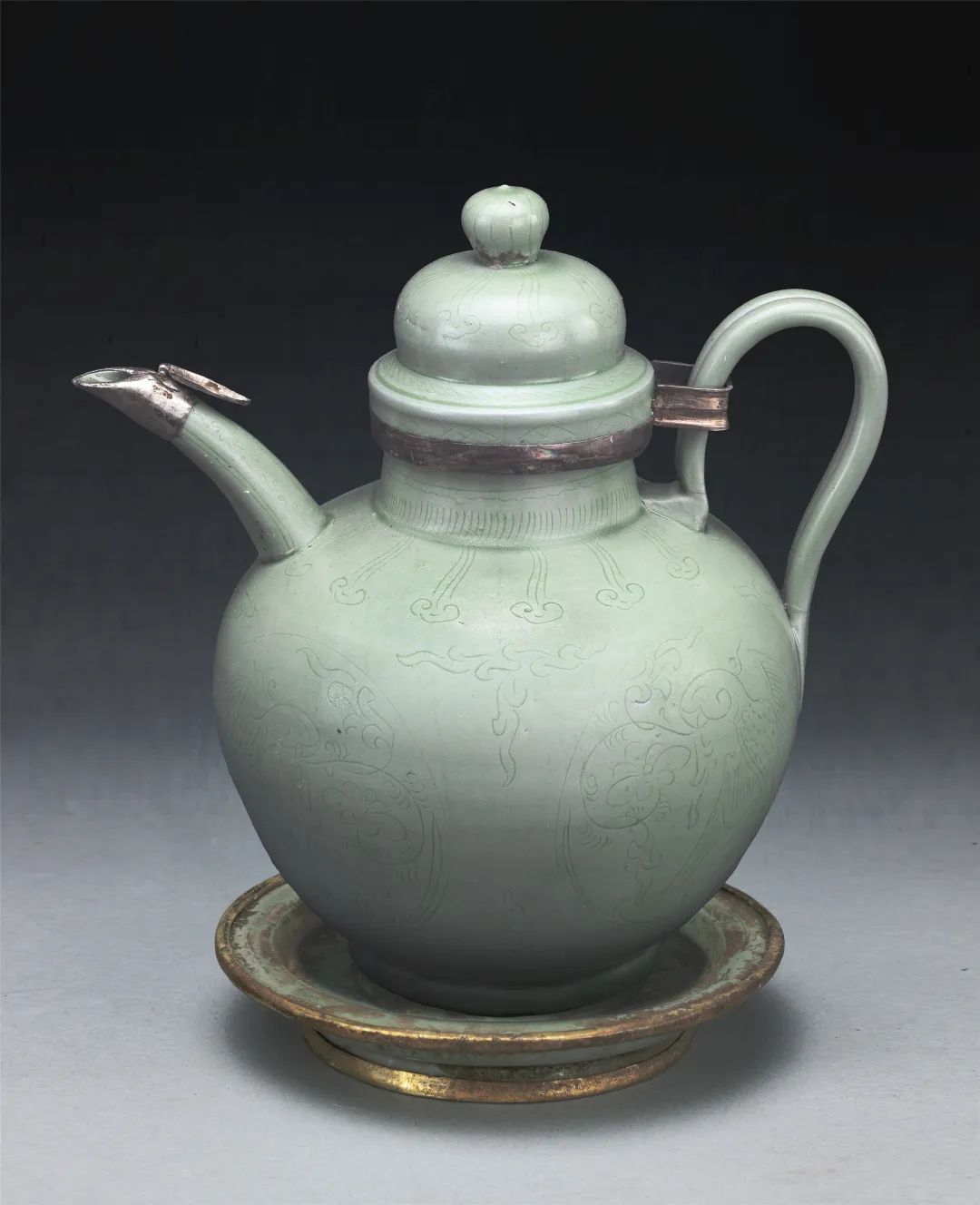 小王力沟辽贵妃墓出土带托鹦鹉纹银釦口青瓷执壶