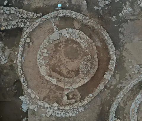 ↑小塘山遗址出土的双圈地面房址。(内蒙古自治区文物考古研究院供图)