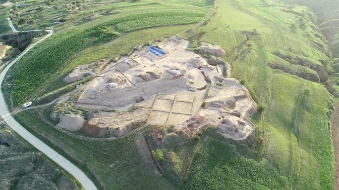 ↑呼和浩特市清水河县后城咀石城发掘区全景。(内蒙古自治区文物考古研究院供图)