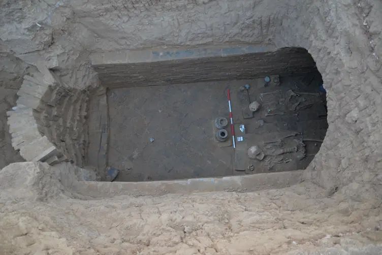 ↑小红城汉墓群出土的墓室。(内蒙古自治区文物考古研究院供图)