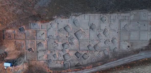 后城咀石城位于内蒙古呼和浩特市清水河县,占地约138万平方米,是目前内蒙古中南部已知规模最大、等级最高的史前时期石城址。2021年5月至11月,内蒙古自治区文物考古研究院对清水河县龙山时代石城瓮城继续进行了考古发掘,累计发掘面积1000平方米,新揭露城门、台基、城墙、壕沟、地下通道、墓葬、灰坑等遗迹20余处,出土玉铲、玉璧、玉料、陶罐、石镞、骨笄、骨镞、猪下颌骨等重要遗物20余件,辨明后城咀石城由双壕沟、内外瓮城以及城墙构成的半月形防御建筑是中国北方已知最早较为完整的城防体系,为研究河套地区文明进程以及社会复杂化历程提供新的资料。![]()