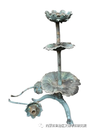 YT2和YT3可确认是六角形塔基,分别位于YT1南侧和北侧。现存台基和地宫两部分。根据白灰墙皮和砌砖的叠压关系可知,YT2地宫至少有三次修筑。二座佛塔基址破坏严重,仅在YT3地宫填土中发现石雕彩绘舍利棺残块等。根据考古发现的遗迹和遗物,可以确认西山坡是一处辽代始建的佛教寺院遗址。佛寺北组为东向的长方形院落,四周有院墙。中轴线上的主体建筑为大型的六角形砖木混合结构建筑(YT1),左右两侧对称布置小型的六角形砖塔(YT2、YT3)。YT1建筑结构特殊,柱础雕刻莲花纹、龙凤纹,出土刻画写实、彩绘贴金的泥塑造像,这些都从一定程度上反映了这座基址的等级和功能。本次考古新发现为研究辽代考古、历史、佛教和建筑等提供了十分重要的实物资料。2015年6-12月间,内蒙古文物考古研究所对锡林郭勒盟多伦县蔡木山乡小王力沟辽代墓葬进行了抢救性发掘,清理辽代大型墓葬两座(编号M1、M2)。M1由墓道、墓门、过洞、甬道、墓室几部分组成,全长25.6米。墓门仿木结构,斗拱上方承黄、绿两色琉璃瓦当,用琉璃瓦加饰墓门,是辽代考古发现中所罕见的。墓室砖砌圆形,椁室由方木搭建的八角形结构。墓室底部方砖铺地,磨光,并用红、白两彩绘制璧形图案,在地面上装饰花纹彩绘,为以往辽墓发掘所仅见。墓葬多经盗扰,但仍出土了大量的随葬遗物,主要有铜、铁、瓷、琥珀、银等几大类,其中鎏金铜渣斗、三节莲花形铜灯、手持柄式莲花香炉为不可多得的辽代文物精品,此外还出土了大量影青瓷及定窑白瓷。