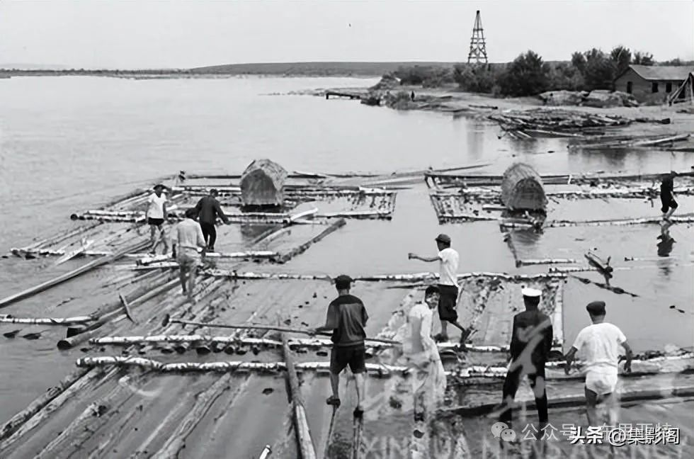 在嫩江中流放木材
