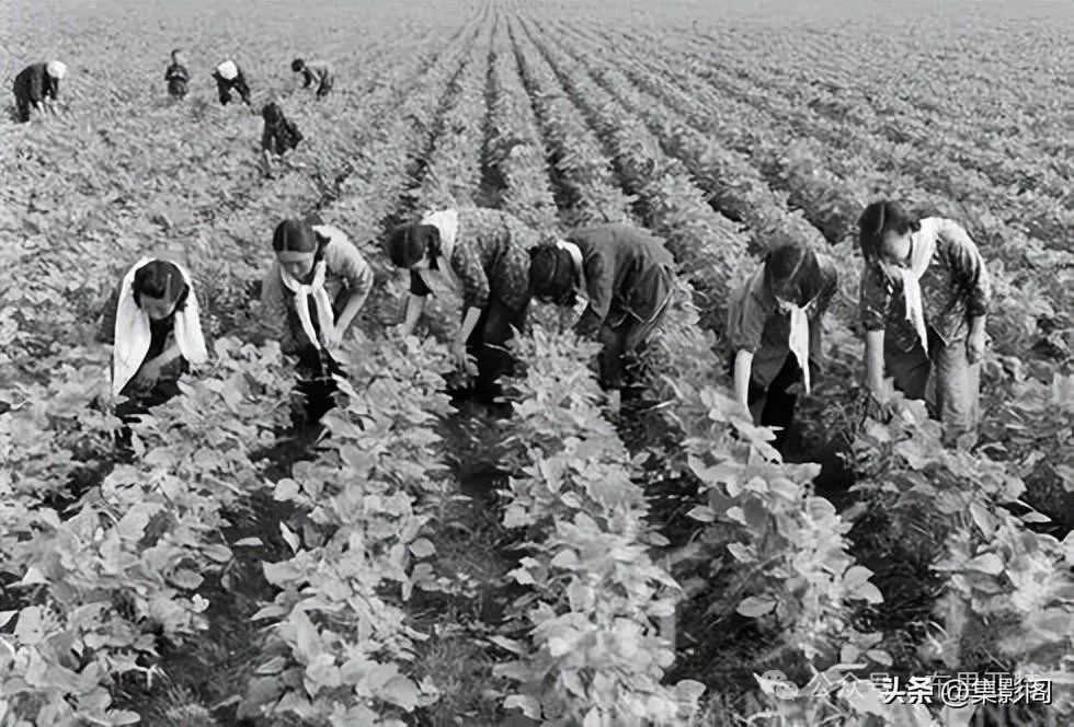 博荣公社西拉金民族生产队社员们在大豆地里除草 1963年 袁汝逊摄