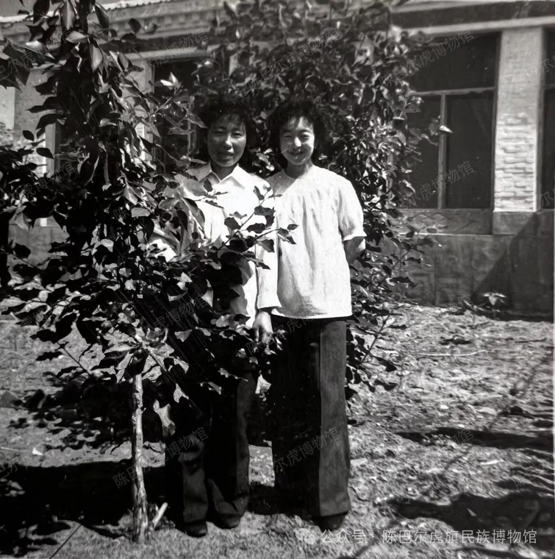 时间不长,又把我调整到百货组里了。日用百货,大小商品很多,可能有几百种。日用品之外还有文具类、图书、少量的药品,还有银扣、银碗、蒙古刀等民族用品。最小的商品就是纽扣、按扣之类。每天销售货物繁杂,有时候卖台收音机,暖瓶、挂钟。有段时间卡式录音机卖得非常火爆。《蝴蝶》牌手摇缝纫机特别抢手,为了早点买一台缝纫机,有的人还会交上预付款。职工卸货。左三:包明 左四:那音太 上世纪70年代早上开门以后,各组都忙着出库货、整理商品、打扫卫生,就这样,一天的工作开始了。百货组的组长是佟秀珍大姐,她每天出库货后记台账,边写边嘴里念叨数字。副食品组的组长是通拉嘎大哥,他有点驼背,腰间盘不好,我那时候想是不是背砖茶落下的病根呢?不太清楚。副食品销售量比较多,出库量也大。烟酒糖茶、罐头、各种糕点。其中重量比较大的商品是白袋子的绵白糖和竹子包装的砖茶,这两样东西背着走可沉了。桶装的散白酒和木头桶酱油容易一些,地上一轱辘就行。好在出库货物时,办公室的人员都出来帮忙。供销社职工 左起:通拉嘎(售货员)、李荣(会计) 80年代初