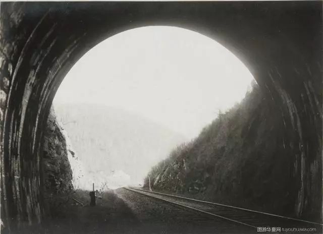 (1935年3月出版),牙克石境内,中东铁路重要工程兴安岭隧道,全长三千余米,建于1901年,1903年凿通后,沙俄修建的东清(中东)铁路全线正式开通,图中是隧道的东口,洞口外的房屋是守卫看护所居。