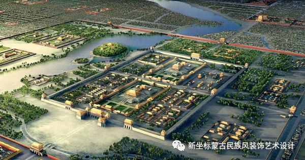 蒙古族汗王建筑自己的宫殿、城池的时候,都要设计出条中轴线来,在中轴线附近的往往是衙署机关、重要街道、兵营、富豪的住宅。