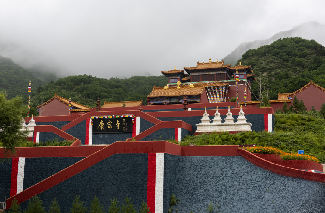 2011年康宁寺作为重点文物,复建于喀旗美林谷。新落成的康宁寺,占地面积共100余亩,建筑面积近5000平米,是国内少有的集藏汉蒙文化为一体的寺院。包含大雄宝殿、观音殿、地藏殿、护法殿、藏经阁、原旧寺密法殿古迹、闭关中心等。殿内供奉释迦牟尼佛、阿弥陀佛、药师佛、文殊菩萨、绿度母、观世音菩萨、地藏王菩萨、时轮金刚坛城、各大本尊上师护法、财神等佛像100余尊。其中最大的释迦牟尼佛总高9米,阿弥陀佛等佛像总高6米。藏经阁内藏有藏汉大藏经、各大祖师卷集3万多件。![]()