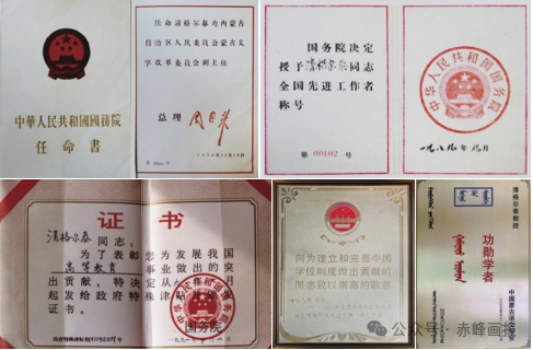 清格尔泰把毕生的精力都献给了祖国的民族语言研究事业,他的执着和奉献得到了党和人民的高度认可。1989 年,他开始享受政府特殊津贴。被选举为第四、五、六、七届全国人大代表,第六、七届全国人大常委。1984—1992 年,他任中国语言学会副会长兼学术委员会委员。1987年,他被推选为国际蒙古学协会副主席。他先后获得内蒙古自治区学习使用蒙古语文先进个人、自治区“光荣人民教师”、自治区劳动模范、全国先进工作者、乌兰夫奖、社会科学金奖、内蒙古杰出人才奖、乌兰夫蒙古语言文字奖、中国蒙古学奖和蒙古国总统颁发的“和平奖”等荣誉和奖项。![]()