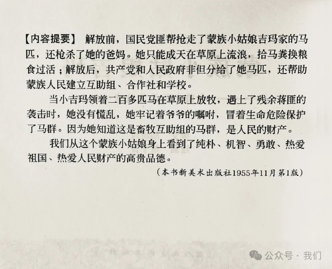 连环画:蒙族小姑娘吉玛编文:胡映西绘画:蔡千音上海人民美术出版社2002年3月第1版