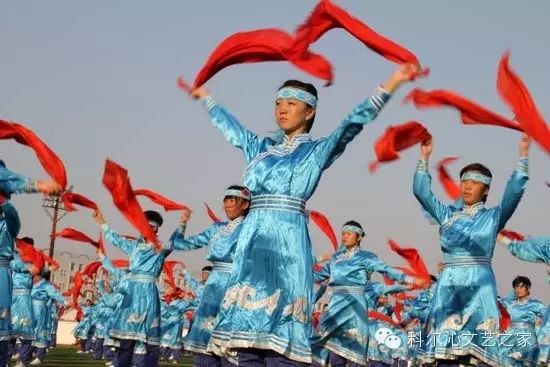 这是一首原创歌曲,歌名叫《天地安代》,寥寥几句诗行,刻画出了安代不一样的风骨,安代的苍桑与辽阔。是的,安代是灵舞,是祈舞,更是天地之舞。从博舞的长生天祭拜到草原牧人围着勒勒车唤唱安代,从踏响干裂的草地向苍天祈雨到千人万人汇成安代潮纵情狂舞,安代,真是一个足以让天地为之动容的舞蹈!仿佛每一个舞者“扯下一片彩云”,挽起苍天大地,一个跳跃就能够触摸到天,一个顿踏让大地为之震颤!看过或跳过安代的人都有这样的感觉,安代有风的呼啸,云的飘渺,江河的奔腾,草浪的荡漾。在溶溶的月光下,女儿们的舞蹈绵柔中洋溢着几分野性,在熊熊的篝火旁,男儿们的舞蹈在威武中传递着几分多情。如果把安代形容为烈马,它有驰骋天下的豪迈,如果把安代比喻成奔驼,它越过大漠从容不迫。安代的舒缓能让你听得见眼睛与眼睛对视的声音,安代的激昂,会卷起漫天满地的红绸巾,让你分辨不出舞者是人还是那苍劲的红绸。看过安代,跳过安代的人都被它的传神魅力深深折服!看过安代,跳过安代的人谁都会相信,原来,安代才是天地之间最美丽的风情,最刻骨的柔情。