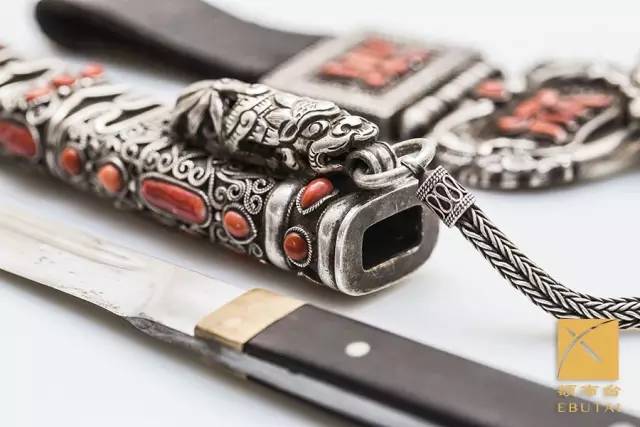 “蒙古刀都是由精钢打制,钢火一定要好,刀锋一定要利,你刚才说得没错,刀上的血槽自然也是在宰牲时为避免体内的气压而设计成宽槽。刀柄和刀鞘也是极其讲究的,反应佩戴者的社会地位,本来这把刀上是象牙筷子,但是太珍贵,我就让毕力格用驼骨给我做了一双,然后他重新做了银饰,这上面的勃勒(银制有花纹的圆形饰件,中间嵌有珊瑚珠)也是前几年他给重做的。”老人将刀收回刀鞘,很爱惜的擦了擦,一言不发,似乎陷入了回忆中。