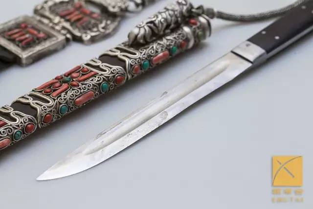 如果你也亲眼见过蒙古牧民的生活,你会为此而惊叹,一把蒙古刀,刀鞘插着筷子挂着火镰,一盏银碗,别着烟袋挎着酒壶就出门放牧去了。如果去拜访朋友,进门一行礼,从怀里掏出银碗,双手恭敬地捧上,接过奶酒饮罢,拿出自己的佩刀剃肉,不用嘴啃,所以才称为手把肉,既卫生又体现草原上人与人独立和谐的状态,饭罢,收好刀筷,把银碗在自己的膝盖上一转,擦干净内壁放入怀中跨马扬鞭而去,潇洒至极。那是我第一次见此情景,也是好奇,我以为马战的时候蒙古刀是弯刀,便于以肩做轴,自上而下时的挥舞,随行喜欢研究冷兵器的朋友跟我解释,战刀是弯刀应该没错,但蒙古族的游牧生活需要,直刀便于插在靴子里及佩戴在腰间,他们无论割绳、宰羊、吃肉都用自己的这把刀,既是生产工具,又是生活日用品,只是大家一说起蒙古族,就要提到成吉思汗,然后提到征服欧亚,然后就想到战刀,然而战争只是一时,祥和才是一世。