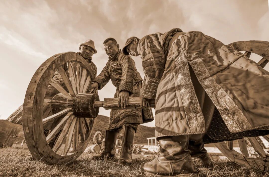 勒勒车承载着牧民们的生活物资,伴随着牧人逐水草而居的生活开启着一段又一段的迁徙旅程。不仅如此,勒勒车还承载着蒙古族绵延千年的历史与深厚的文化底蕴。它见证了草原上的金戈铁马,见证了无数次部落的崛起与交融,每一道车辙都镌刻着先辈们的智慧与勇气,诉说着这个民族的传奇故事。