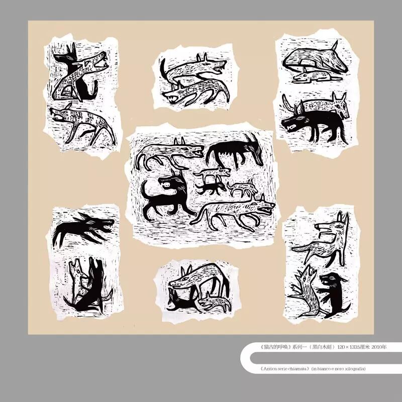 《猿古的呼唤》系列二/黑白木刻/120x133.5cm/2010年