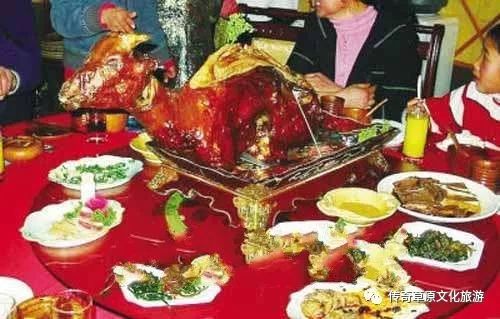 诈马宴(又作质孙宴、只孙宴)被誉为蒙古族的第一宴,历史上的皇家盛宴,是蒙古族的“满汉全席”。据罗布桑却丹《蒙古风俗录》中记载,蒙古食谱中最为贵重的膳食是整牛、整羊宴席,蒙古人统称诈马宴。这种席面是蒙古庆典中较为隆重的宴席。“诈马”,蒙古语指煺掉毛的整畜,意思是将牛、羊家畜宰杀后,用热水煺毛,去掉内脏,烤制或煮制上席,是一种分食整羊、整牛的传统名词。