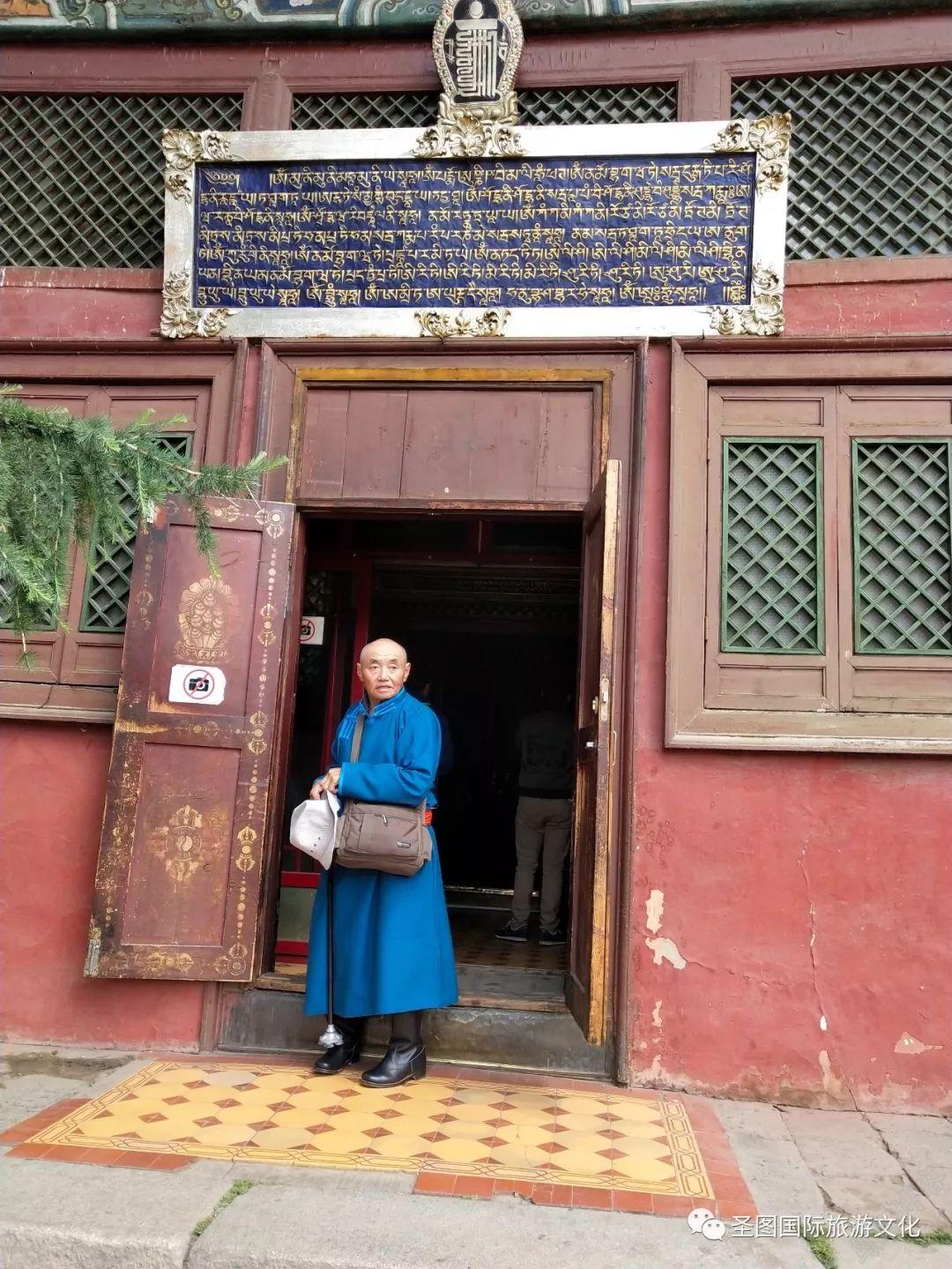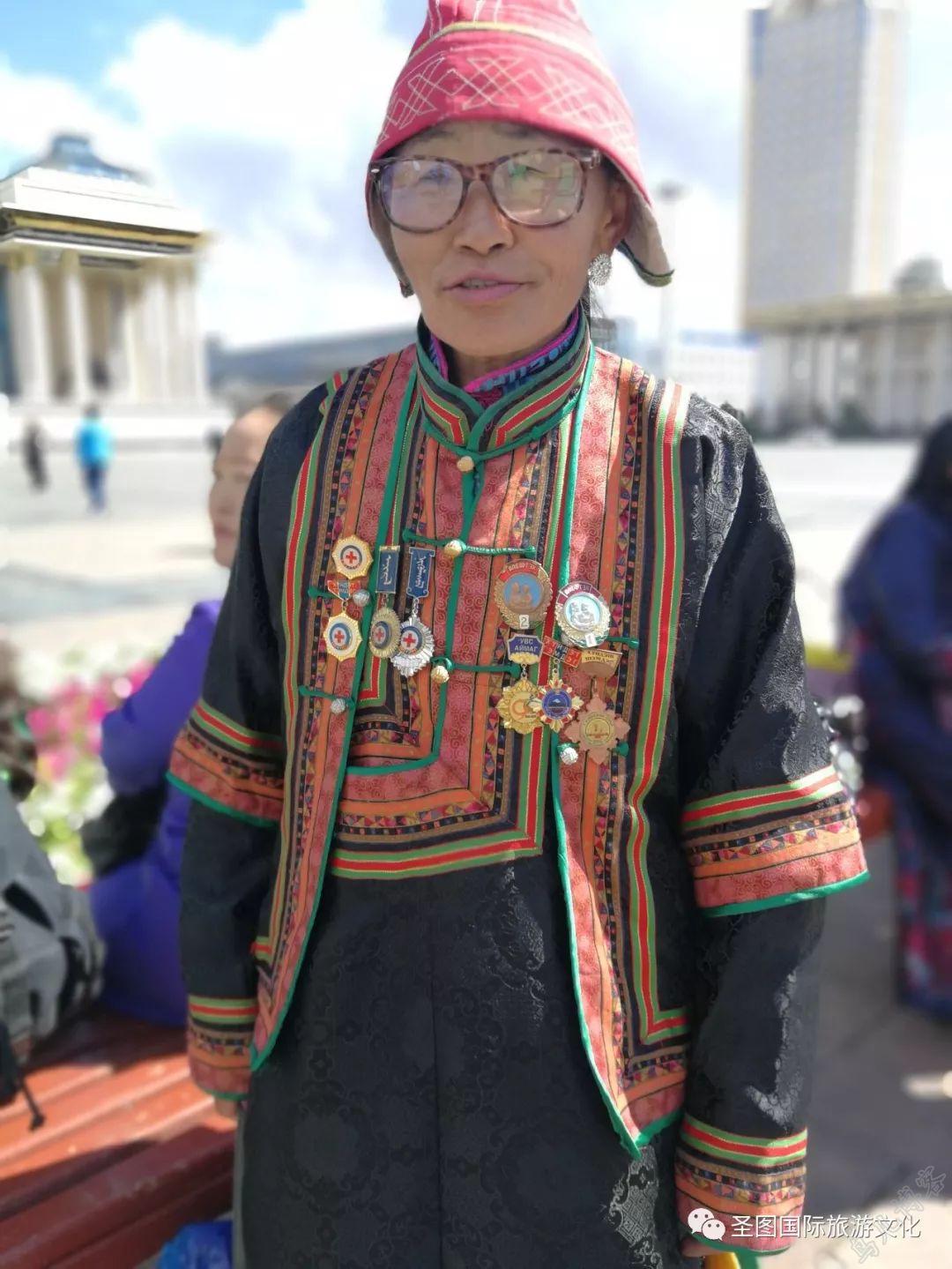 一位老额吉穿着自己部族的服装从蒙古西部而来